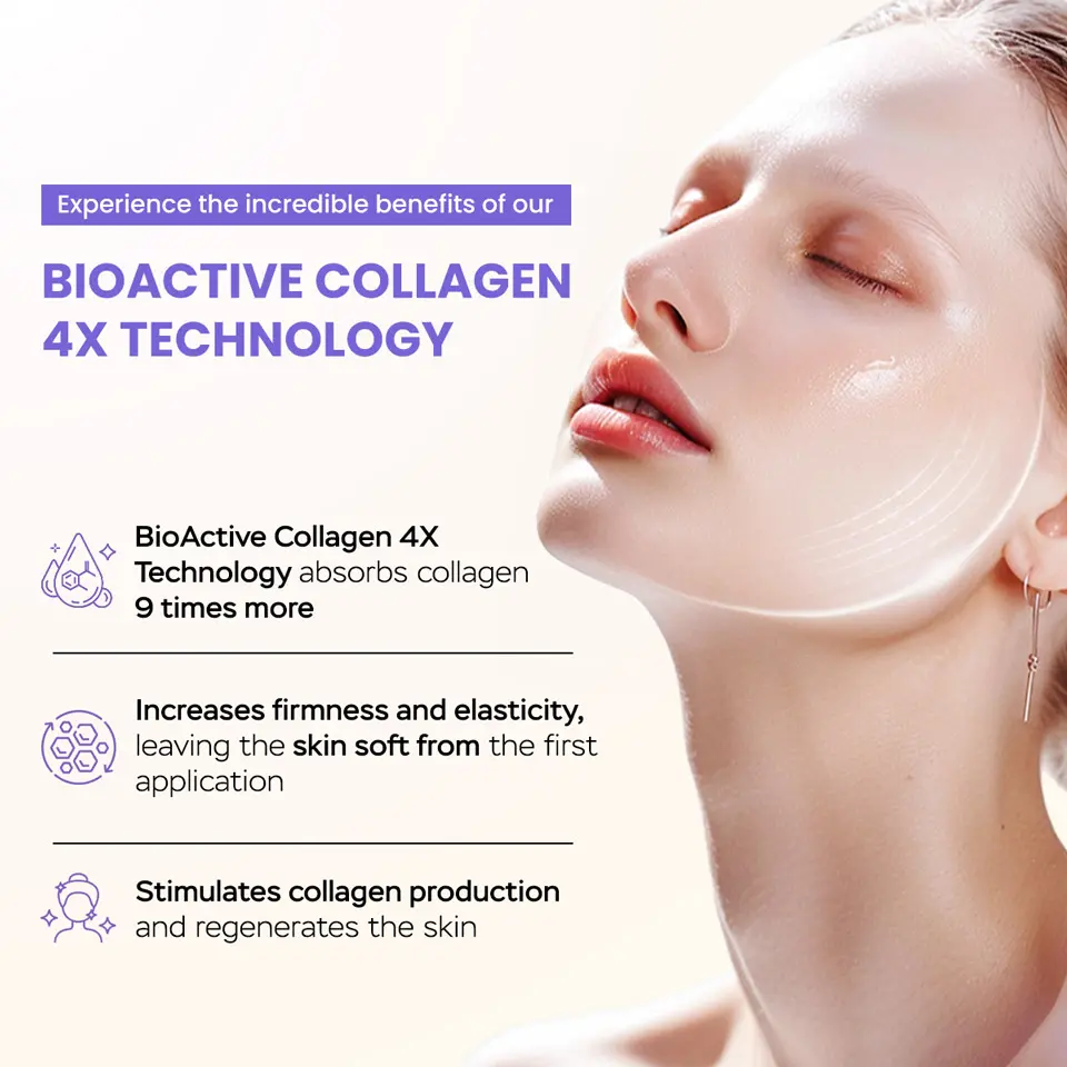 Powered by Korean Bio-Wrapping Technology, this innovative mask features 80% fresh, low-molecular collagen to help visibly improve firmness and support skin elasticity while you rest. The breathable film helps lock in hydration, minimize the appearance of pores, and promotes a smoother, more radiant-looking complexion.