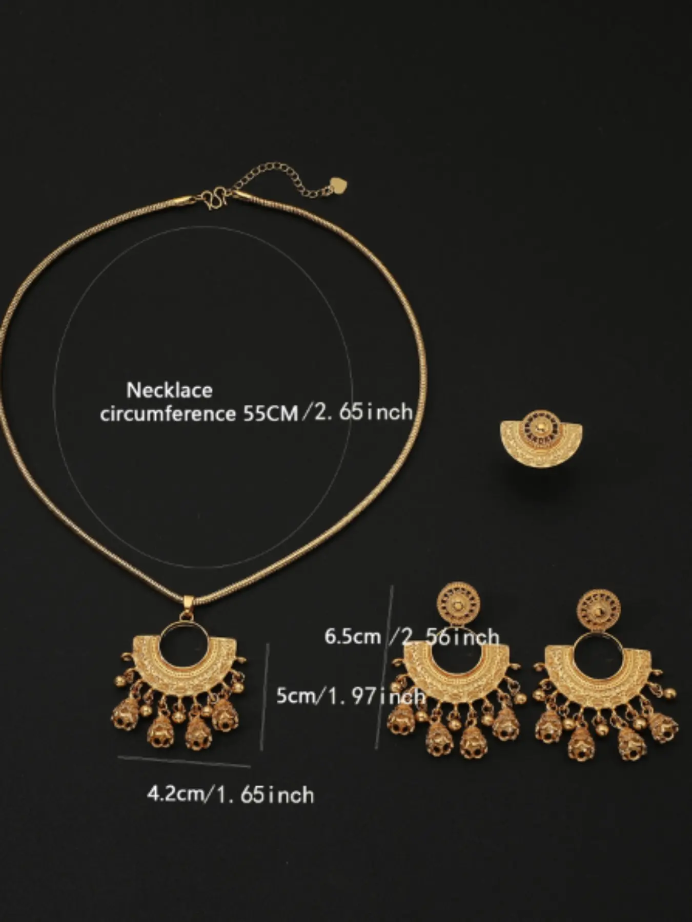 Vintage Bell Set Necklace Earrings Ring, Elegant Ethnic Wedding Party Accessories, All Seasons Jewelry Set