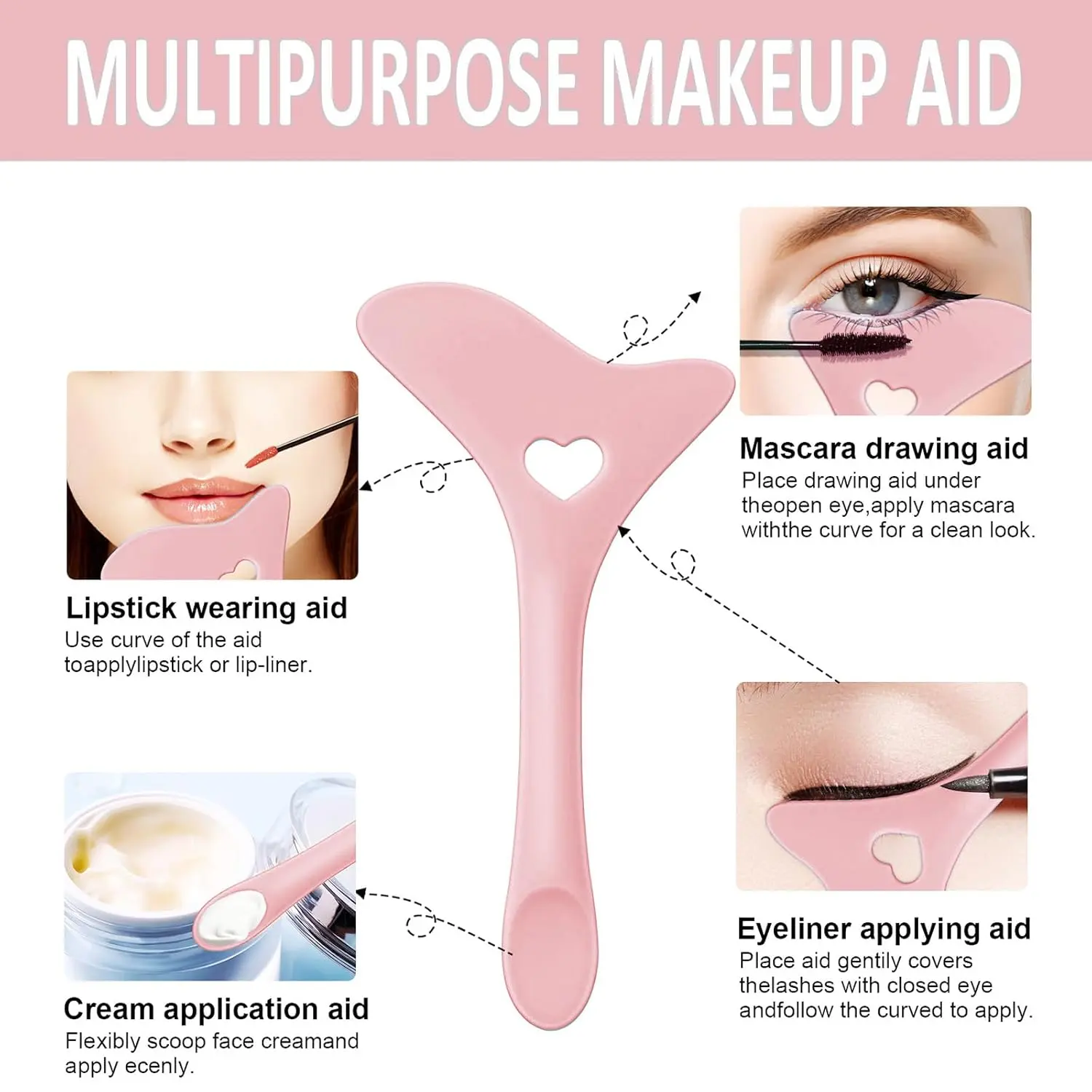 Eyeliner Stencils 2Pcs Reusable Silicone Eyeliner Aid Mascara Shield Multifunctional Makeup Stencil for Beginners Eye Liner Eyelash Eyeshadow Lipstick Applicator Guide Tool - Pink