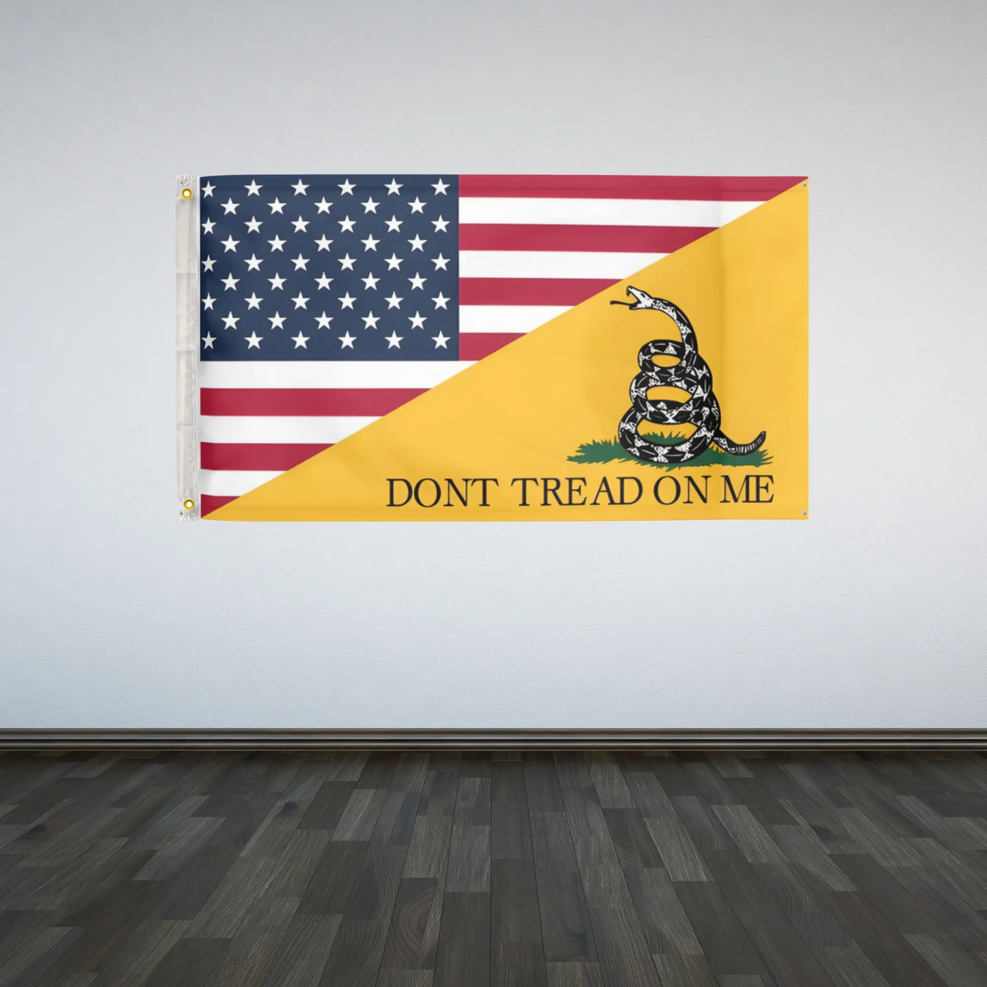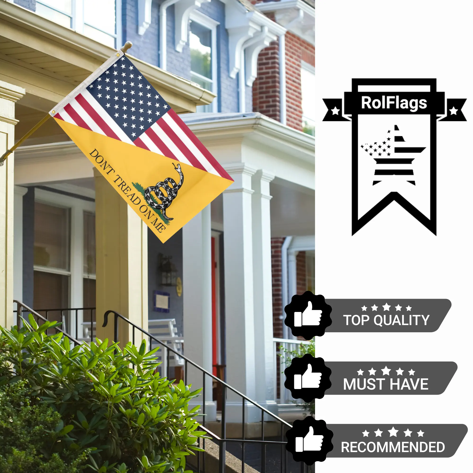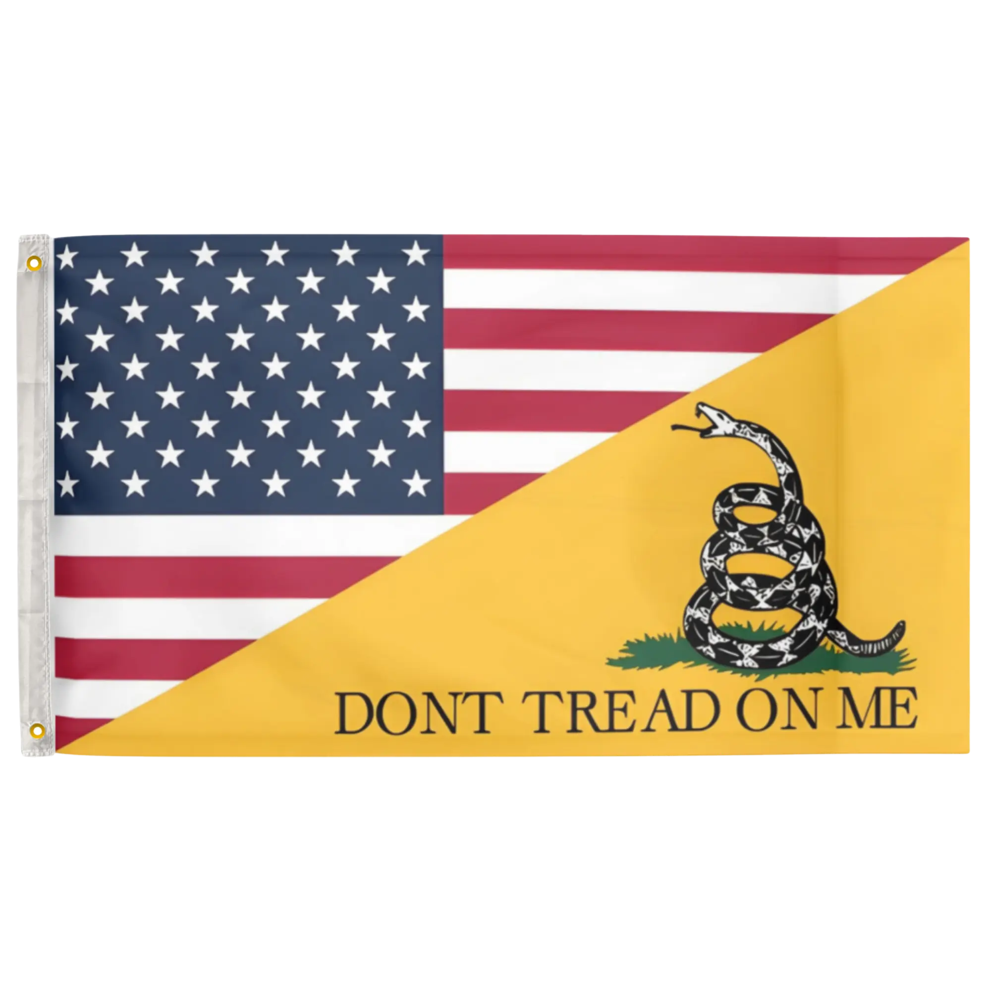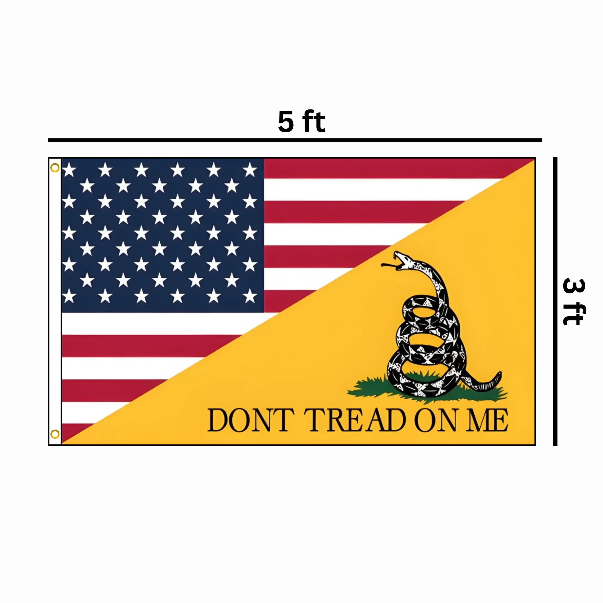 The USA Gadsden 3'x5' Gadsden Don't Tread On Me Flag is a traditional and patriotic flag designed for outdoor display. Made of 100% polyester material, this multicolor flag features a Gadsden Flag subject and is waterproof for durable use. With a size of 3 x 5 ft, it is easy to hang from a flagpole and is ideal for showing support for the history of the United States in a yard, garden, or outdoor living space. It is a stylish and eye-catching addition to any home or garden décor.
