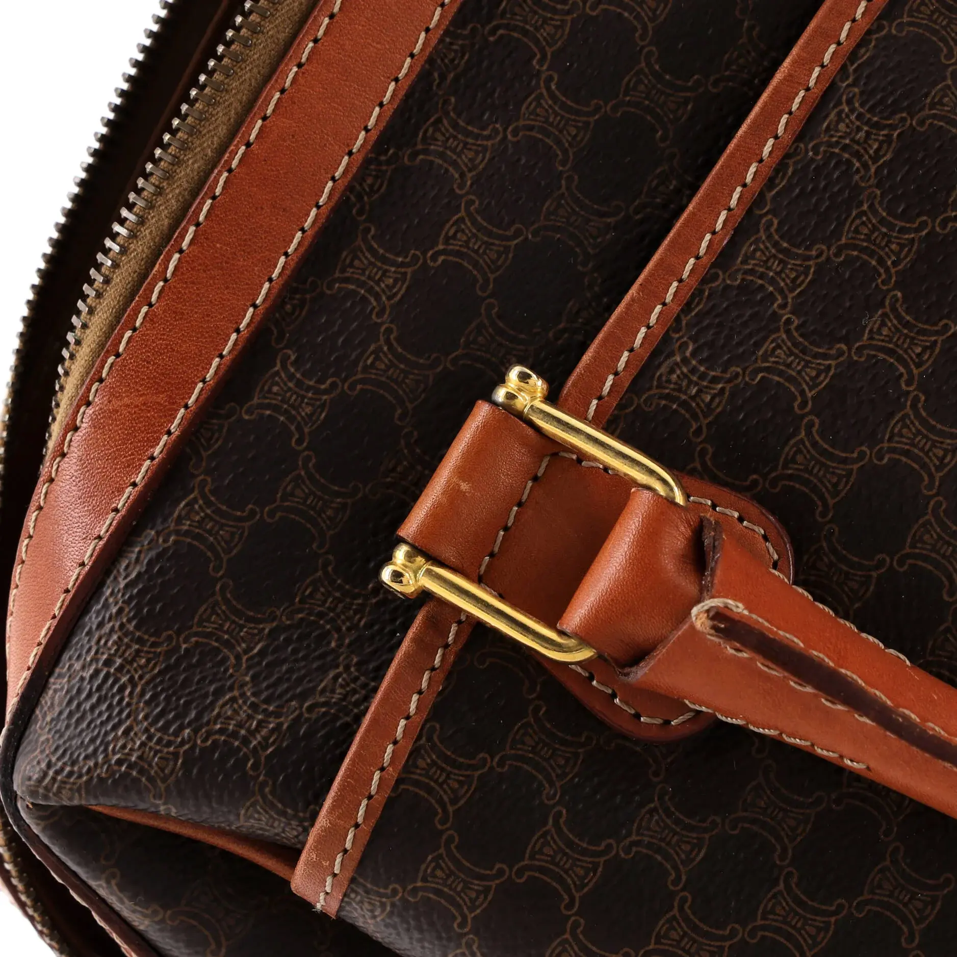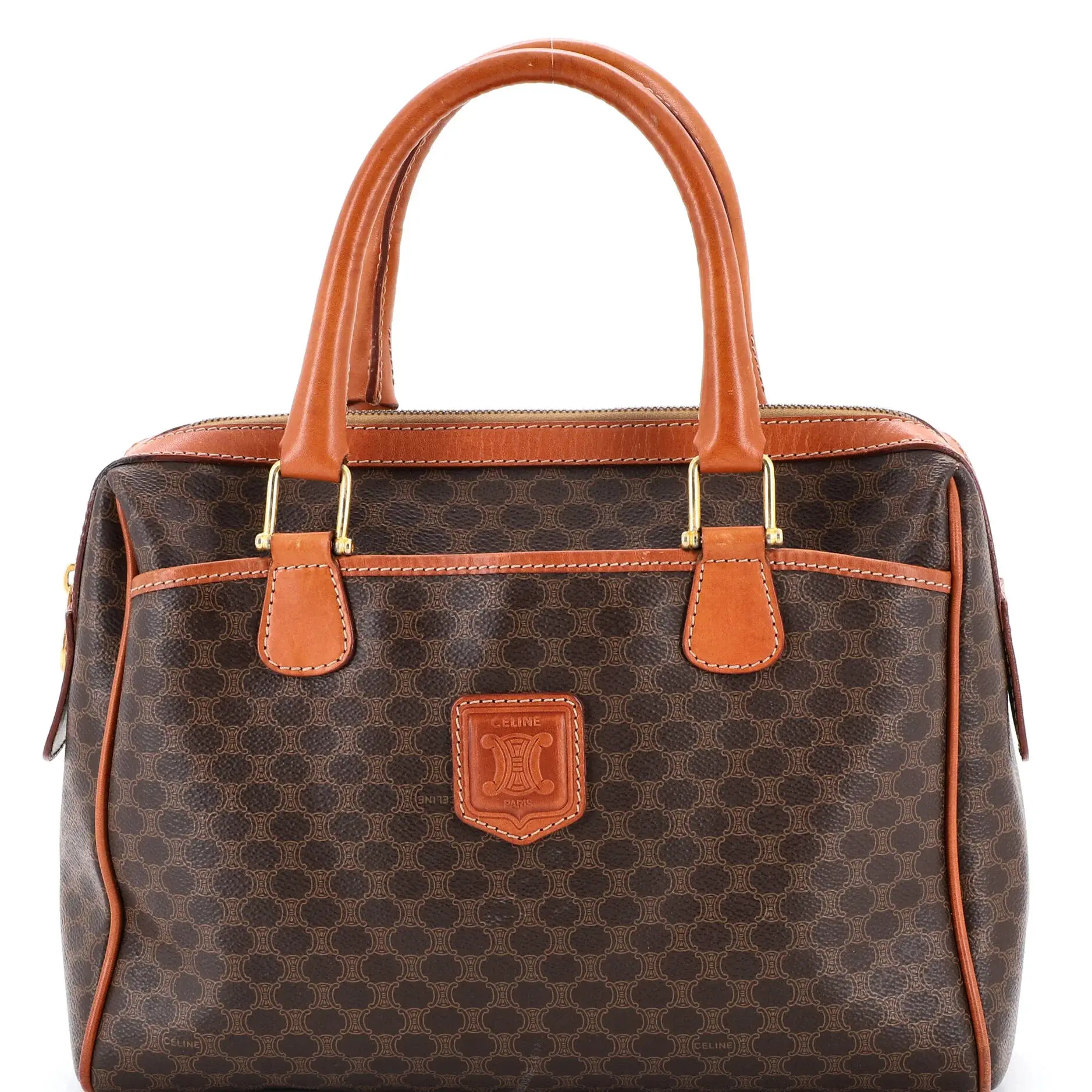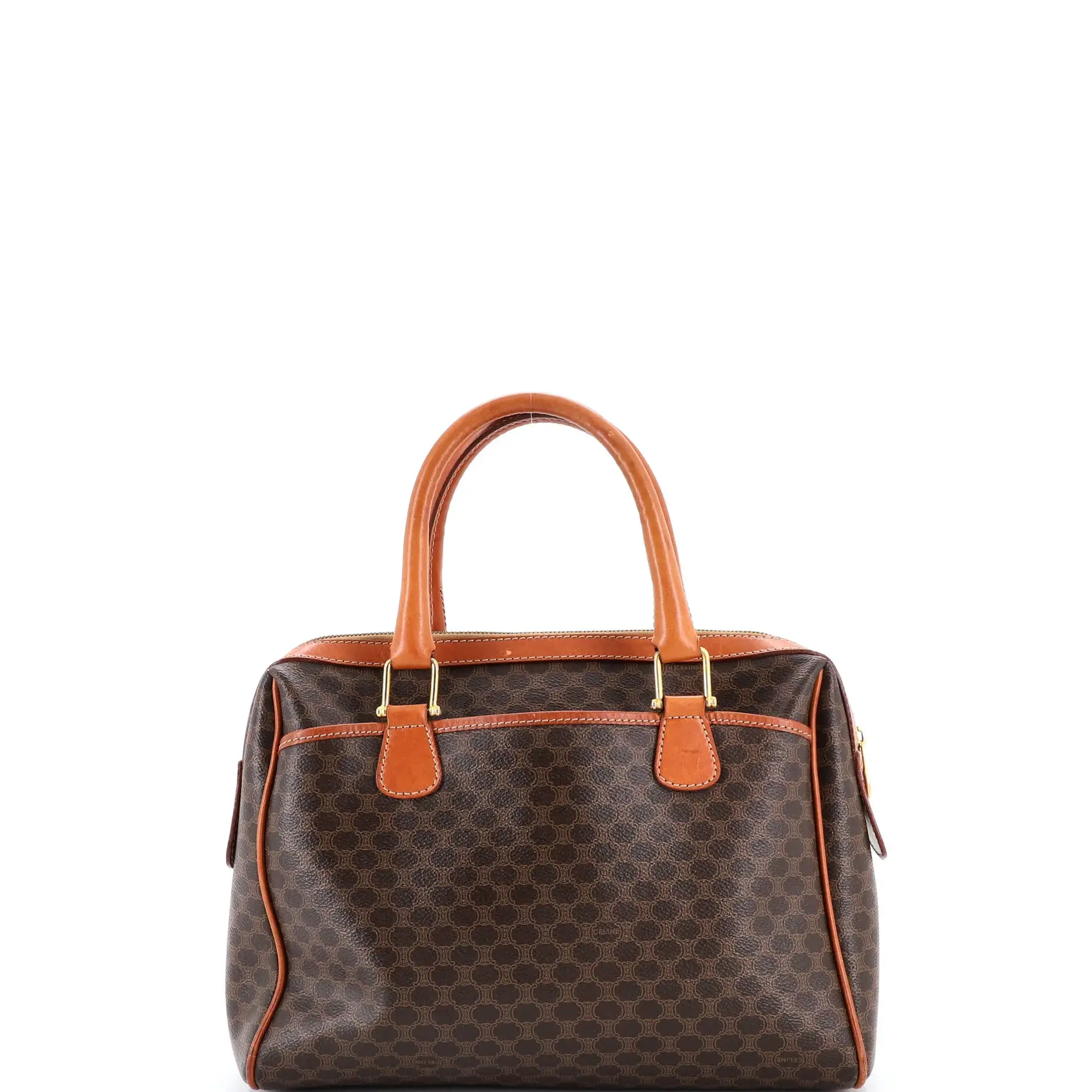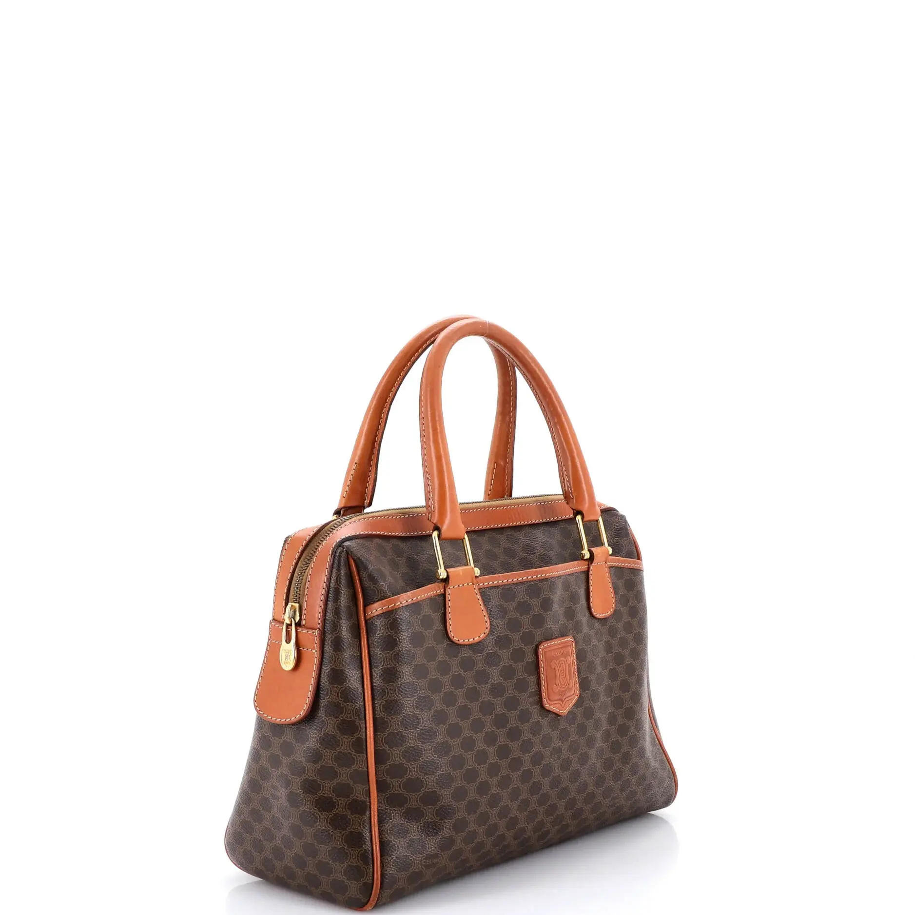 Pre-owned Celine Canvas Coated, Leather Top Handle Bags Vintage Boston Bag Macadam Coated Canvas Medium by Rebag