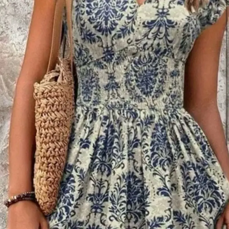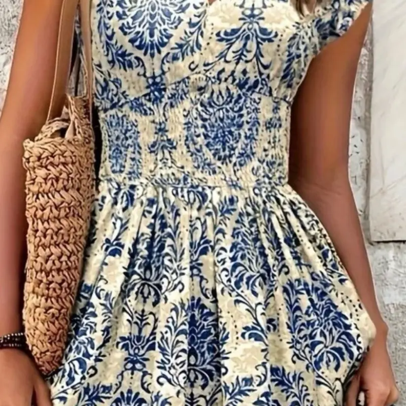 Dokotoo Womens Dresses 2026 Summer V-Neck Ruffle Cap Sleeve Empire Waist Flowy Striped Beach Midi Maxi Dress with Pockets