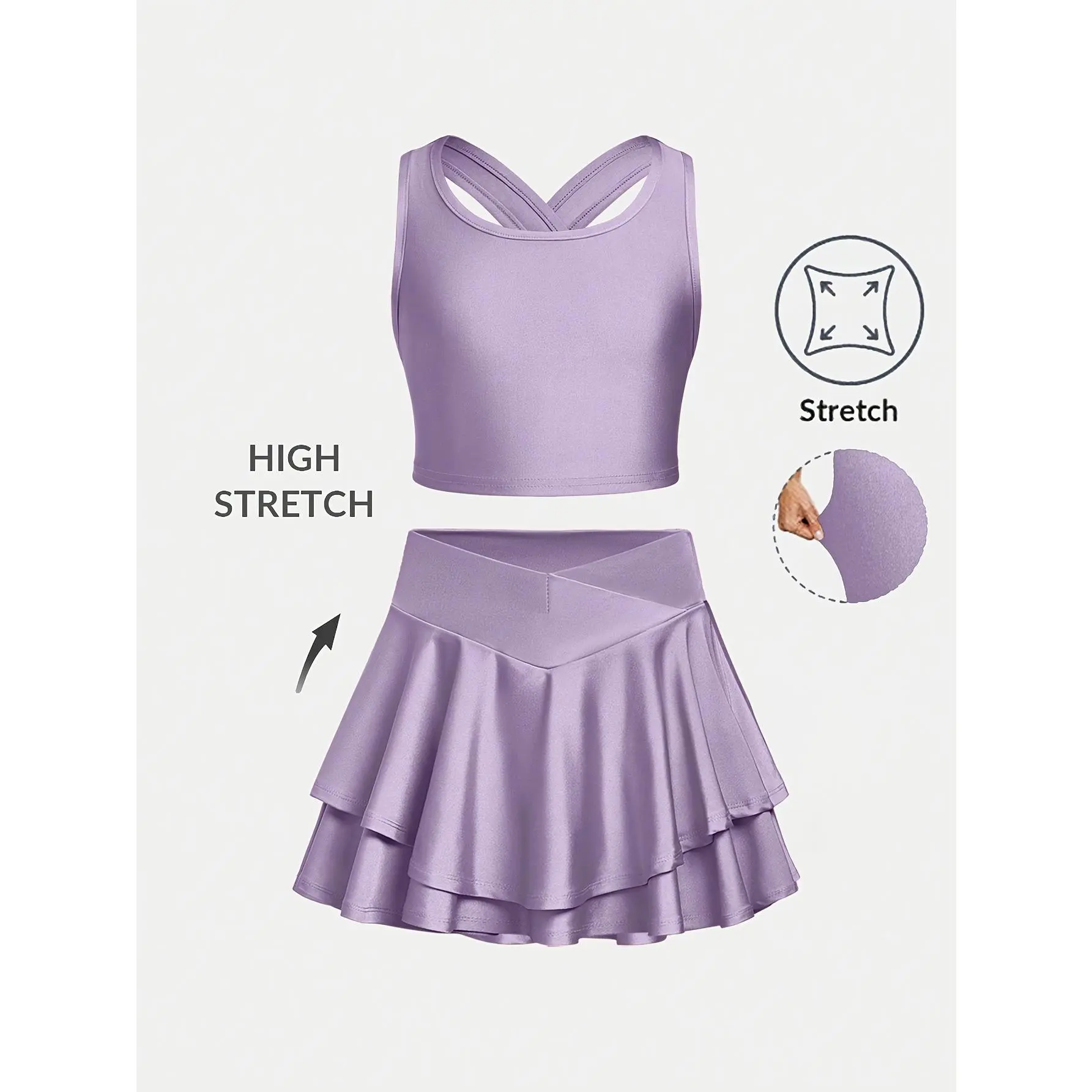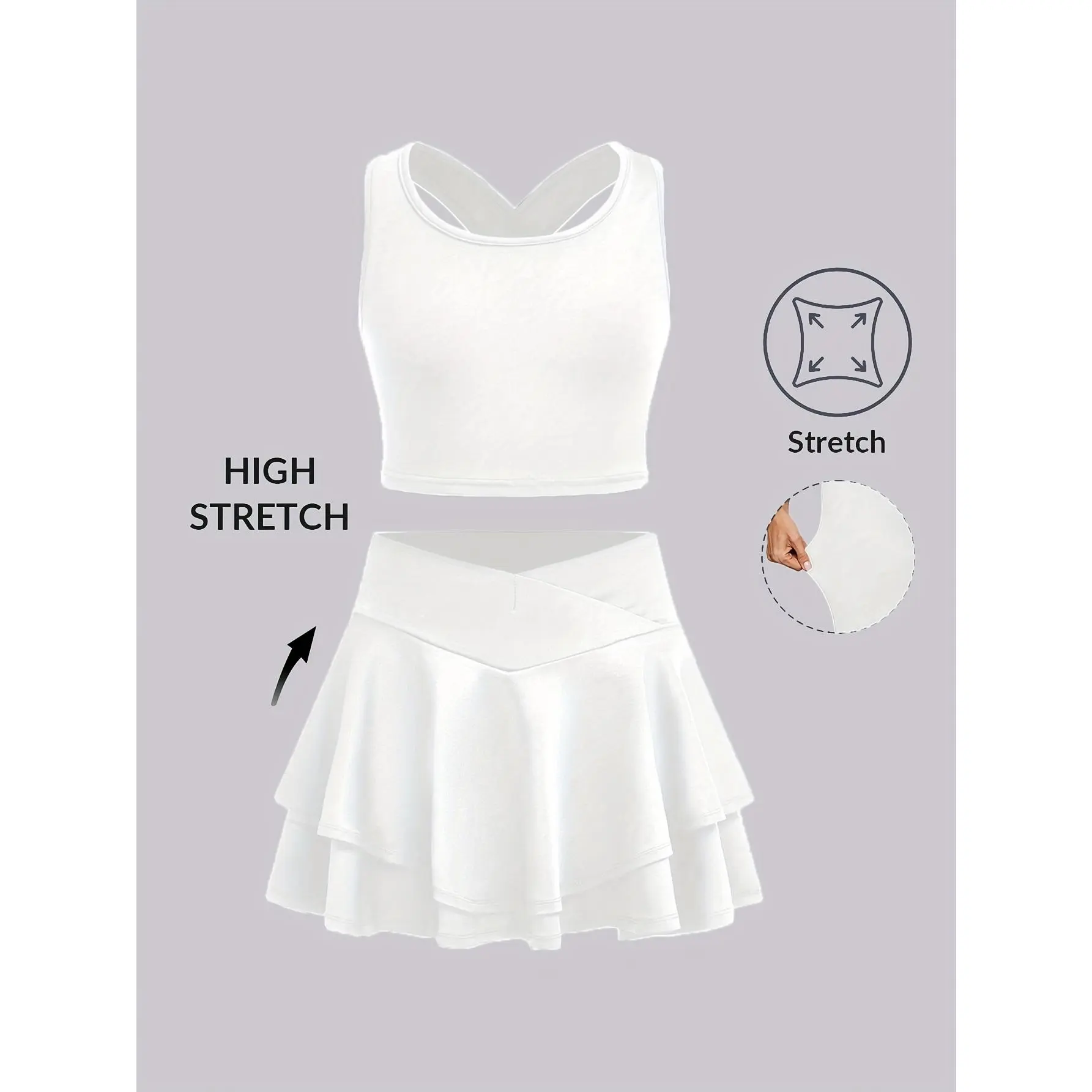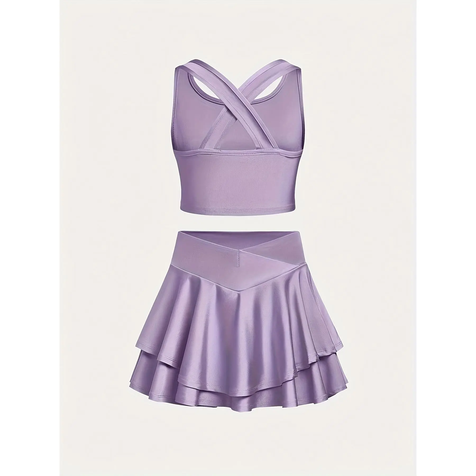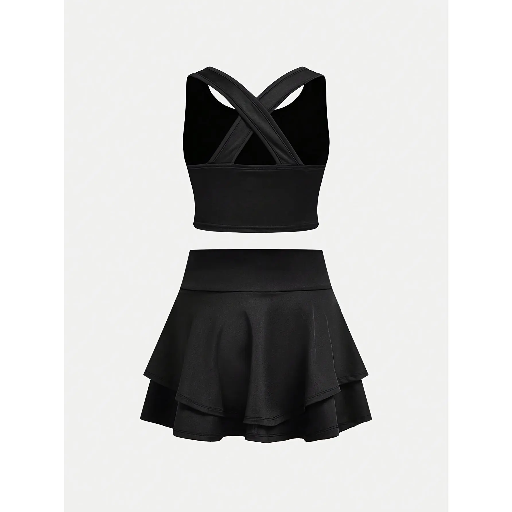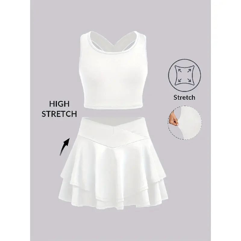 Casual and stylish slim-fit round-neck cross-strap tank top and skirt set, suitable for tennis, volleyball, badminton, running, and other sports activities, perfect as a birthday gift or holiday present, for teenagers aged 7-14, fitness wear, sporty style