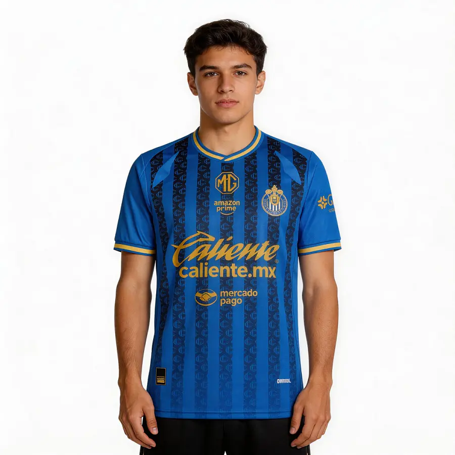 2526 Chivas CD Guadalajara Third Away Jersey Vintage Mexico Blue Stripe Short Sleeve Top Football Jersey LIGAMX