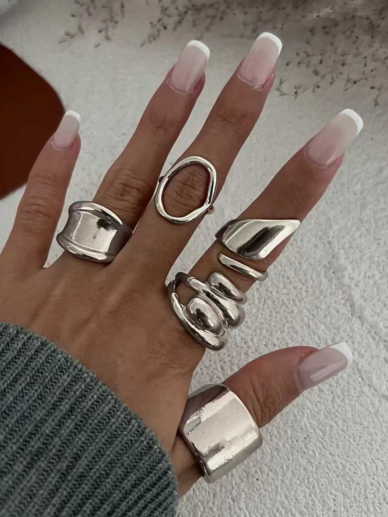 5. Unique Geometric Joint Ring Set for Women, Hip-Hop Style, Five-Piece Jewelry Kit, Smooth Finish, All-Season Accessory