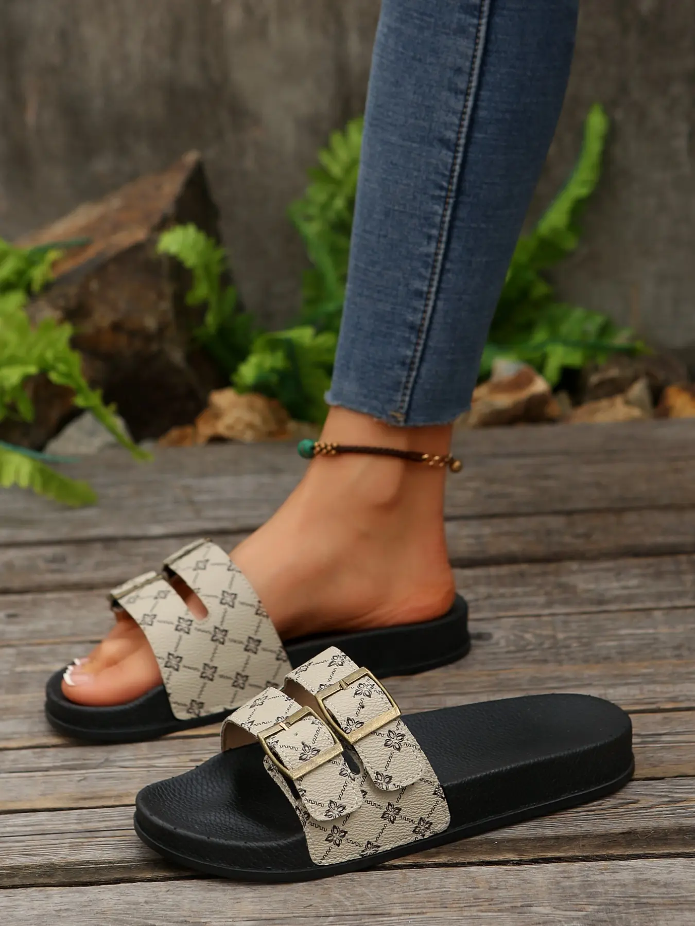 Women's Fashionable Double Buckle Decorated Slippers, Casual Comfortable Slides, Durable Soft Slippers for Daily Wear, Walking Shoes, House Slides