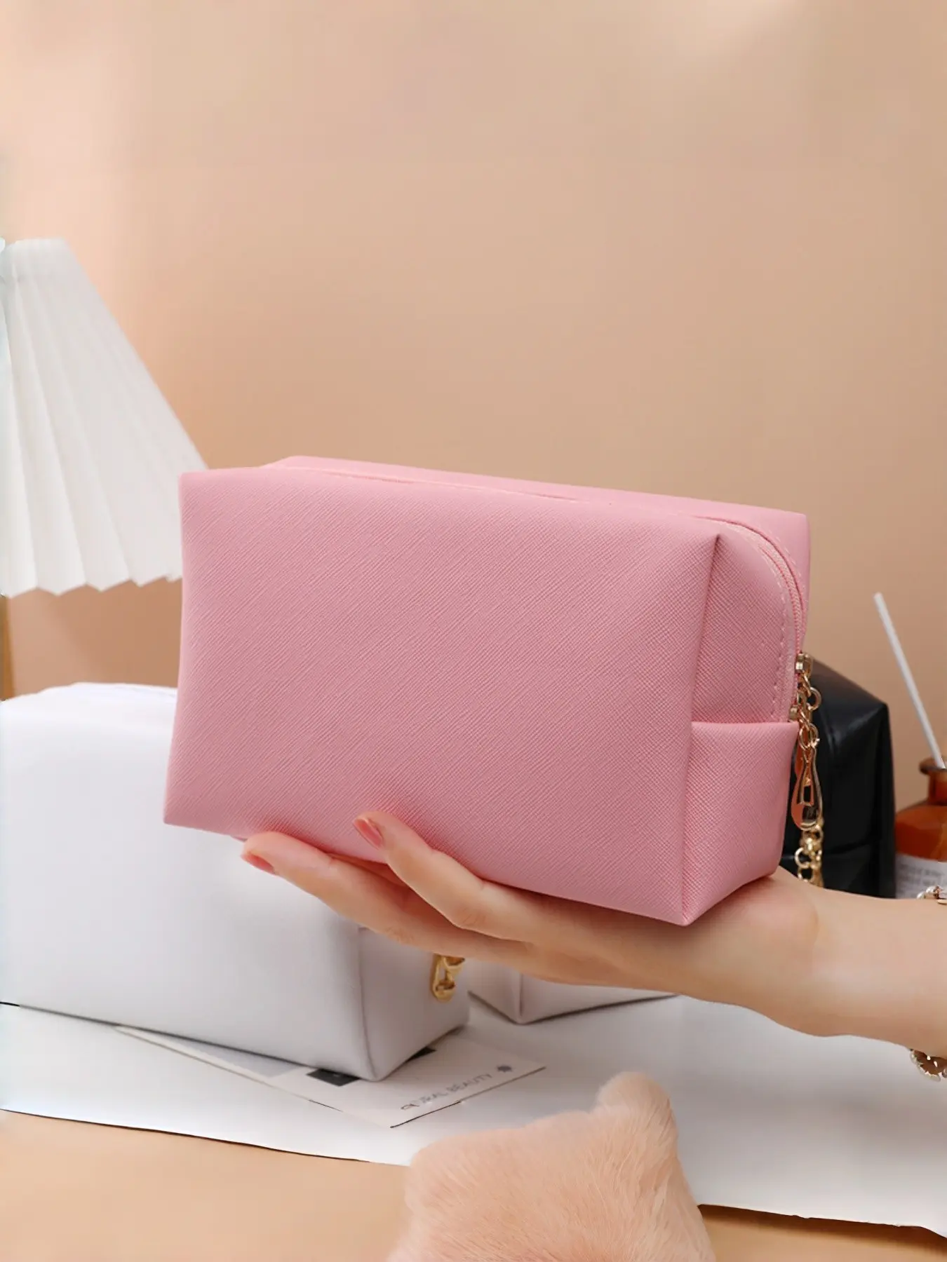Elegant Portable Makeup Bag, Classic Material, Matte Finish, Zippered Travel Cosmetic Case, Lightweight Toiletry Pouch, Essential Gift for Women
