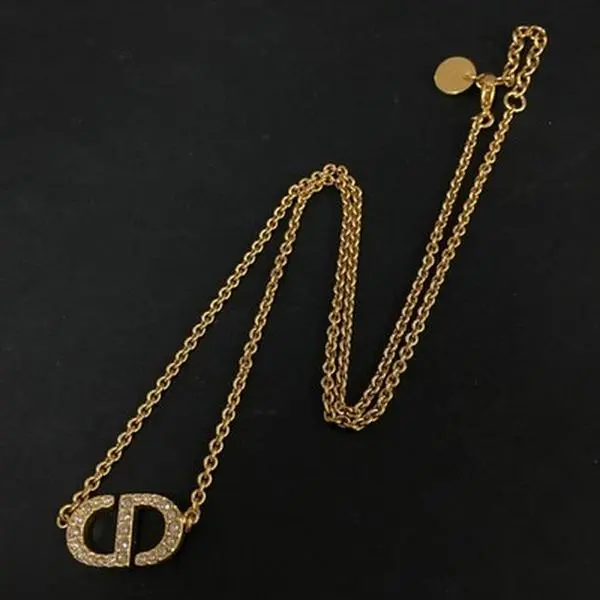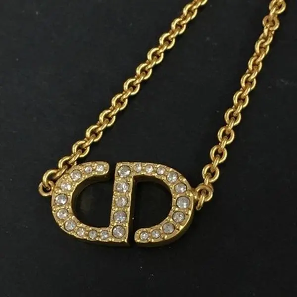 Christian Dior CD Logo Rhinestone Gold Tone Pendant Necklace - 198203