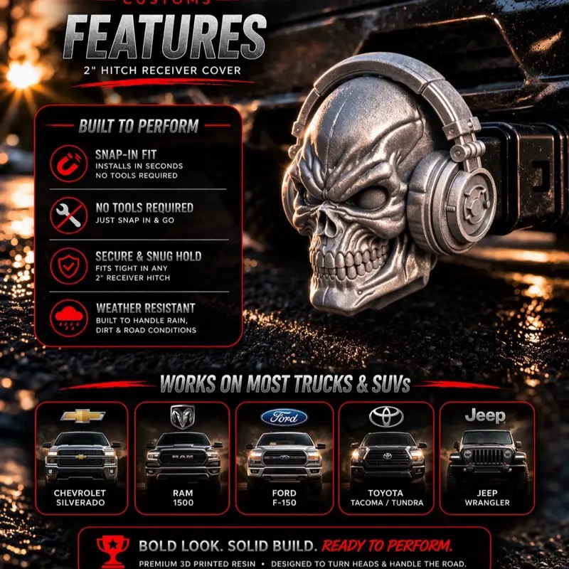 4. Beats Skull - Snap-in fit | 2” Tow Hitch Cover | Premium Truck Accessory