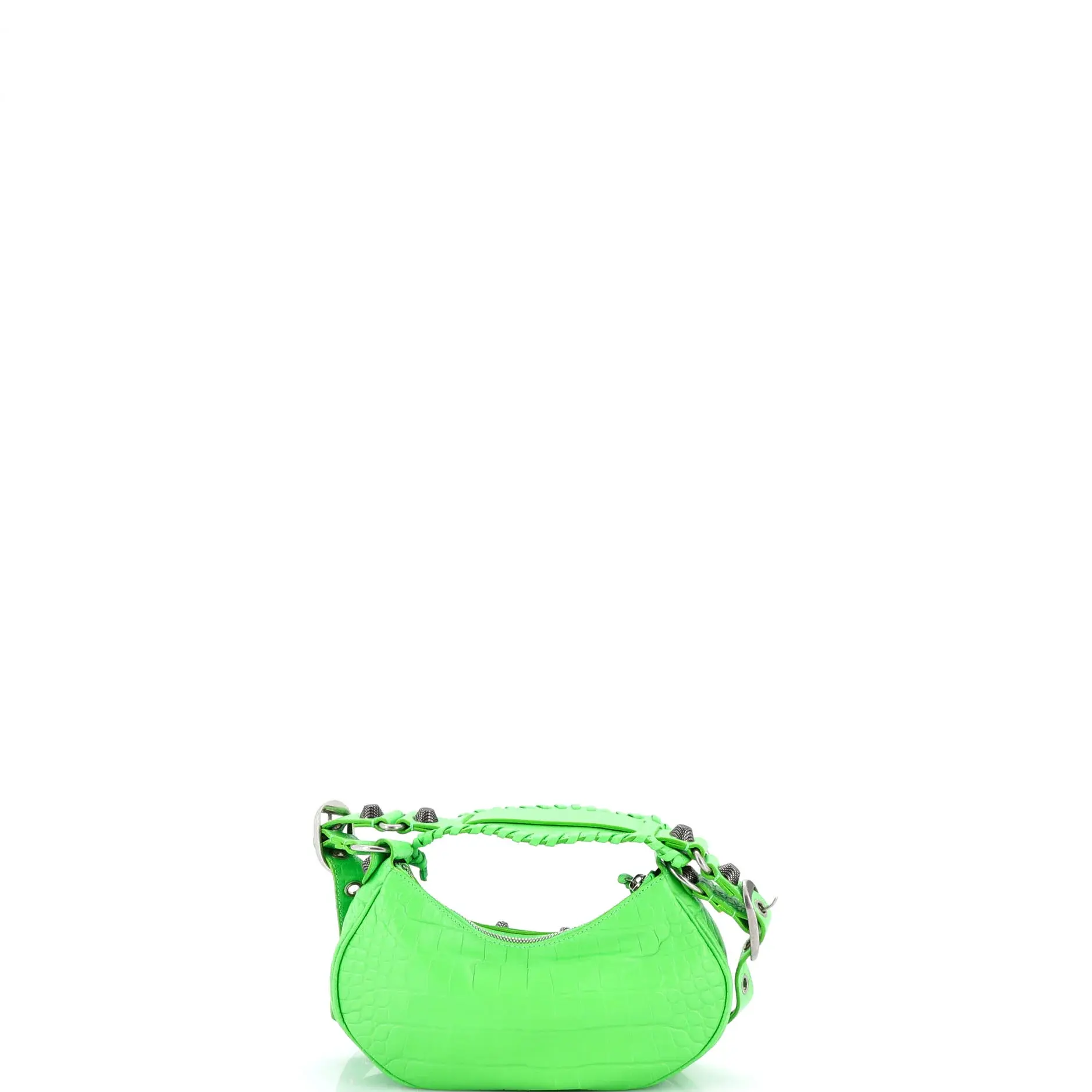 Pre-owned Balenciaga Leather Shoulder Bags Le Cagole Giant Studs Shoulder Bag Crocodile Embossed XS by Rebag