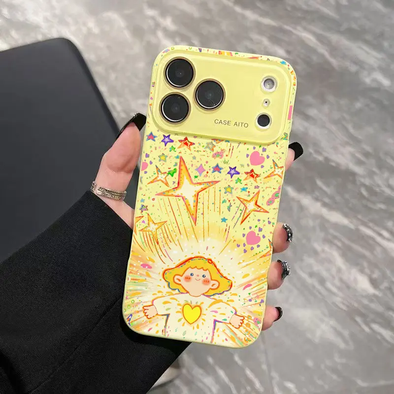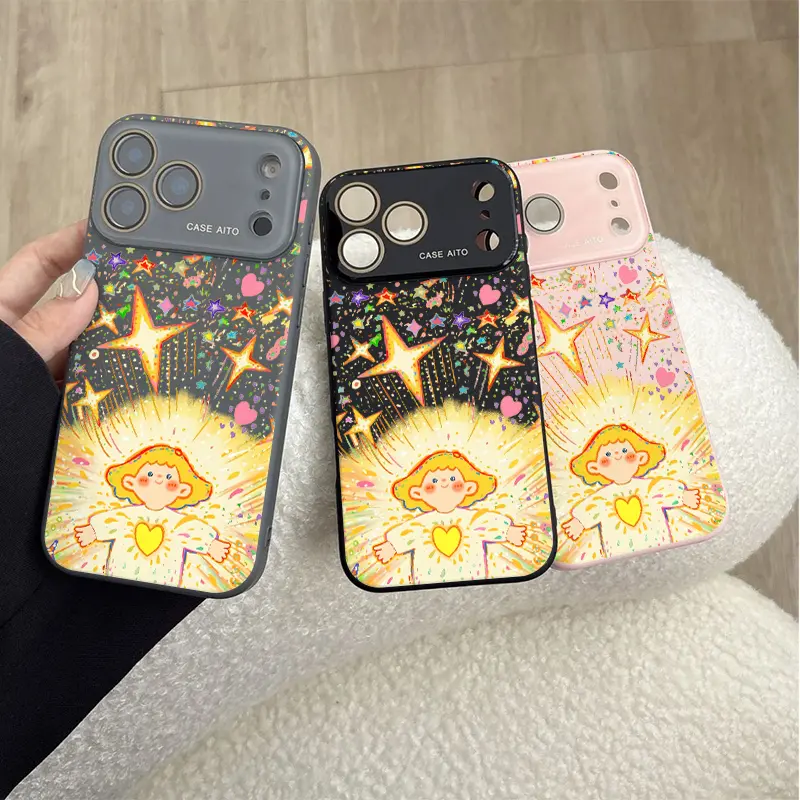 Starlight Angel Phone Case, Aesthetic Dopamine Ins Style Cover for iPhone 17 16 15 14 13 12 Pro Max Plus, Ultra Skin-Friendly Touch, All-Inclusive Lens Protection, Fairy Tale Angel Gift for Her, Trendy Sparkly Case