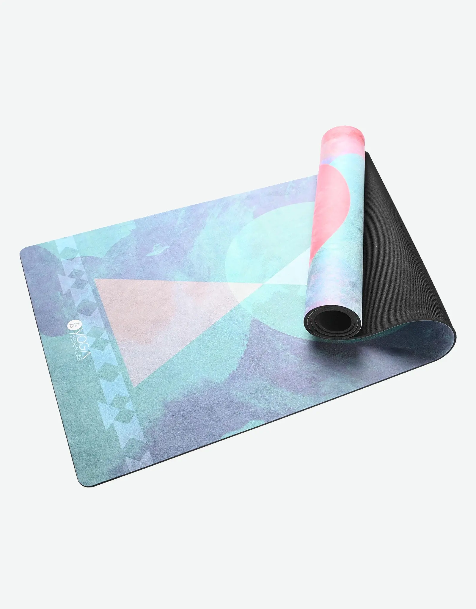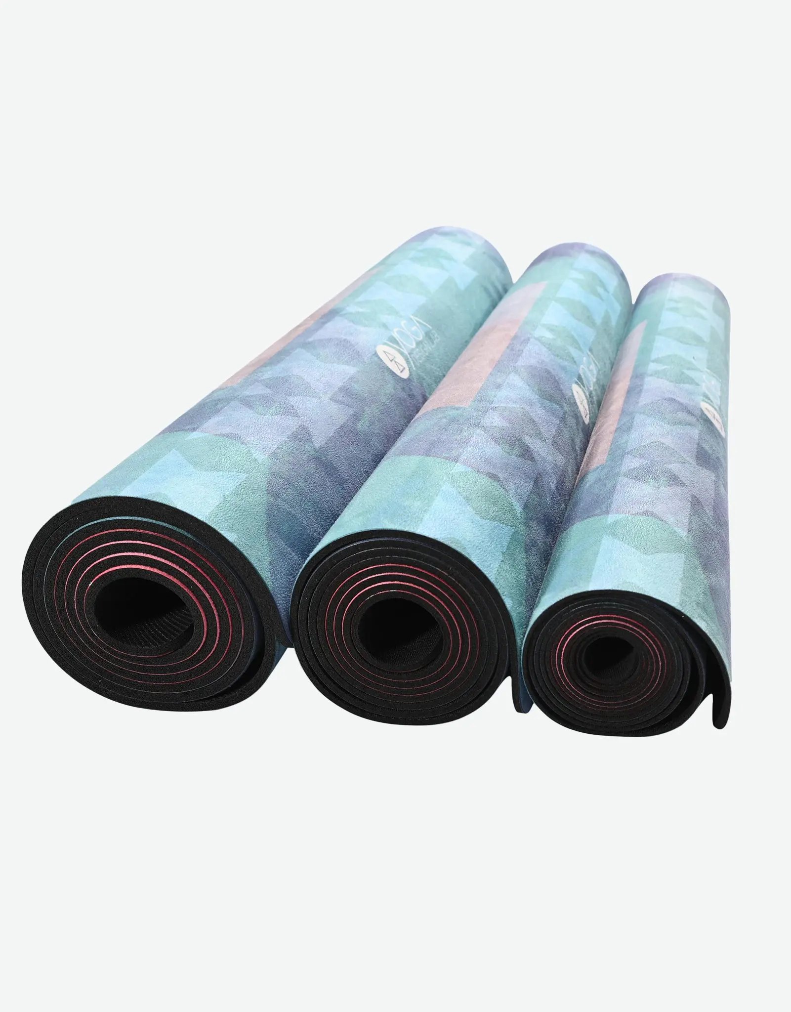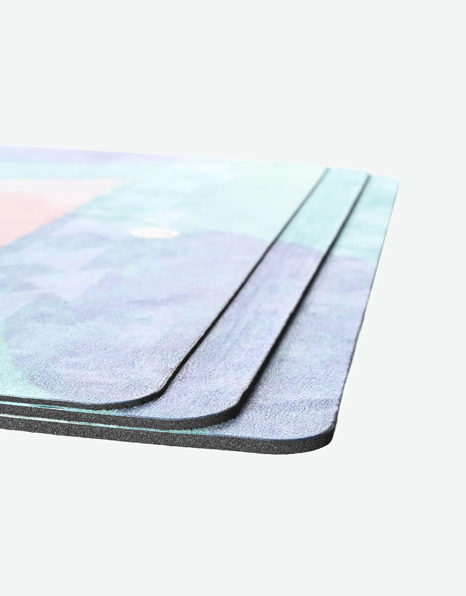 Elevate your practice with the Combo Yoga Mat - Zenith, a fusion of performance and artistic expression. Inspired by celestial balance and geometric harmony, its ethereal blend of pinks, blues, and mountain textures transports you to a place of serenity and strength.