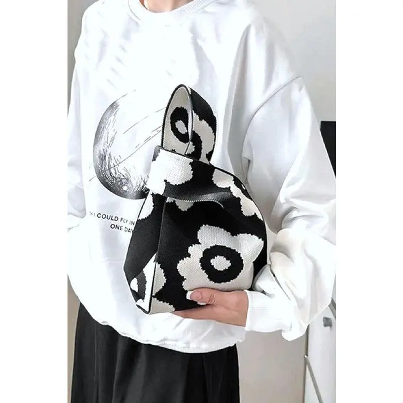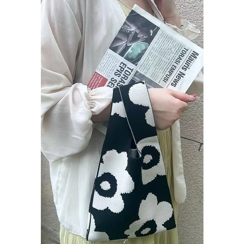 To achieve an exceptionally stylish day, The Luxie's carry the Aesthetic Flower Knitted Tote Handbag.