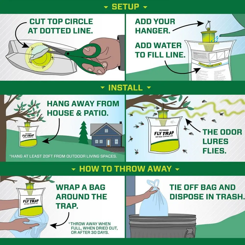 ·Pre‑baited trap that lures and kills house flies, blow flies, bottle flies, and more.
