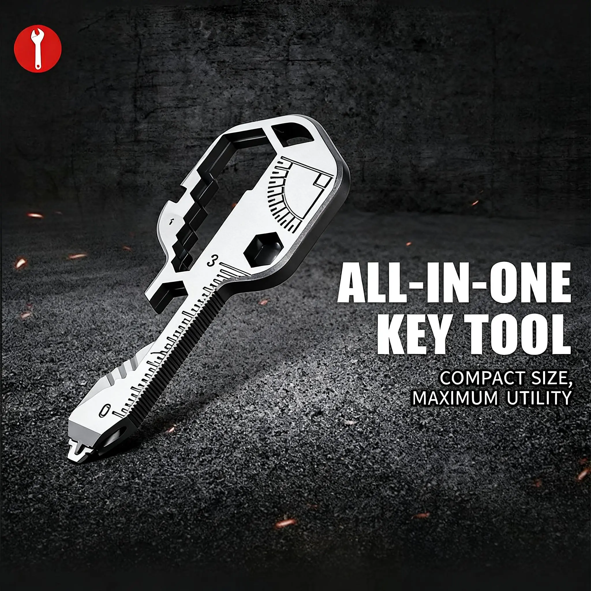 Packs 16 essential tools into a compact, key-shaped design. Includes bottle opener, screwdrivers (flat & Phillips), wrench, ruler, scraper, and more – all in one tiny gadget.