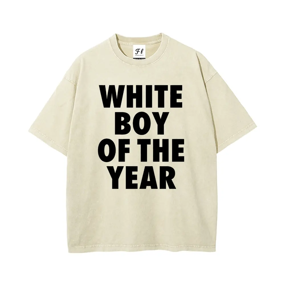White Boy Of The Year Shirt Oversize Unisex Washed T-Shirt for Women and Men's Unisex Fit Batik Cotton Oversize Streetwear Menswear Super Soft Pre-Shrunk