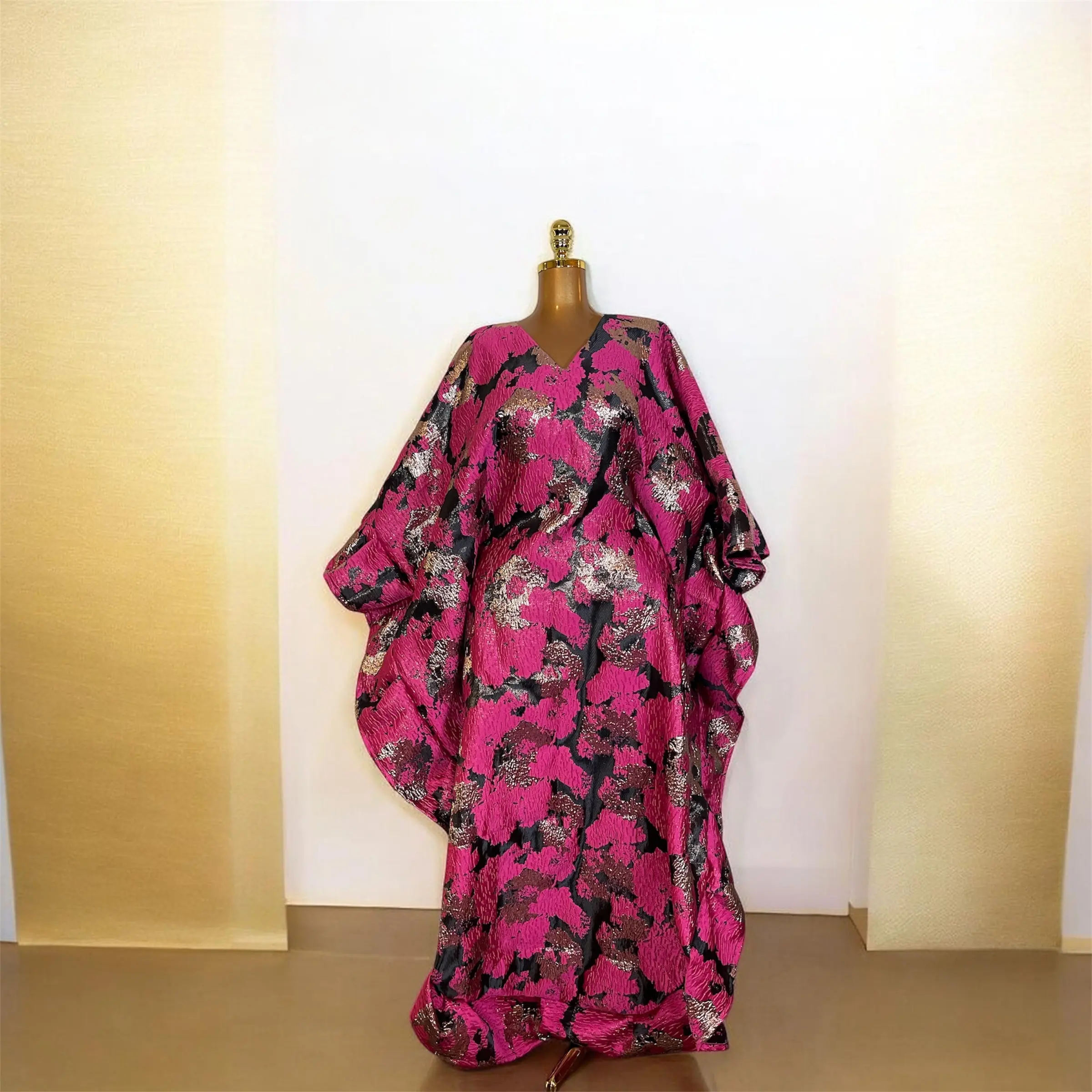 Turn heads in this stunning Butterfly Bubu, a perfect blend of elegance and comfort. Crafted from luxurious fabric with bold golden floral embroidery on a rich black background, this statement piece is designed to flatter every silhouette.