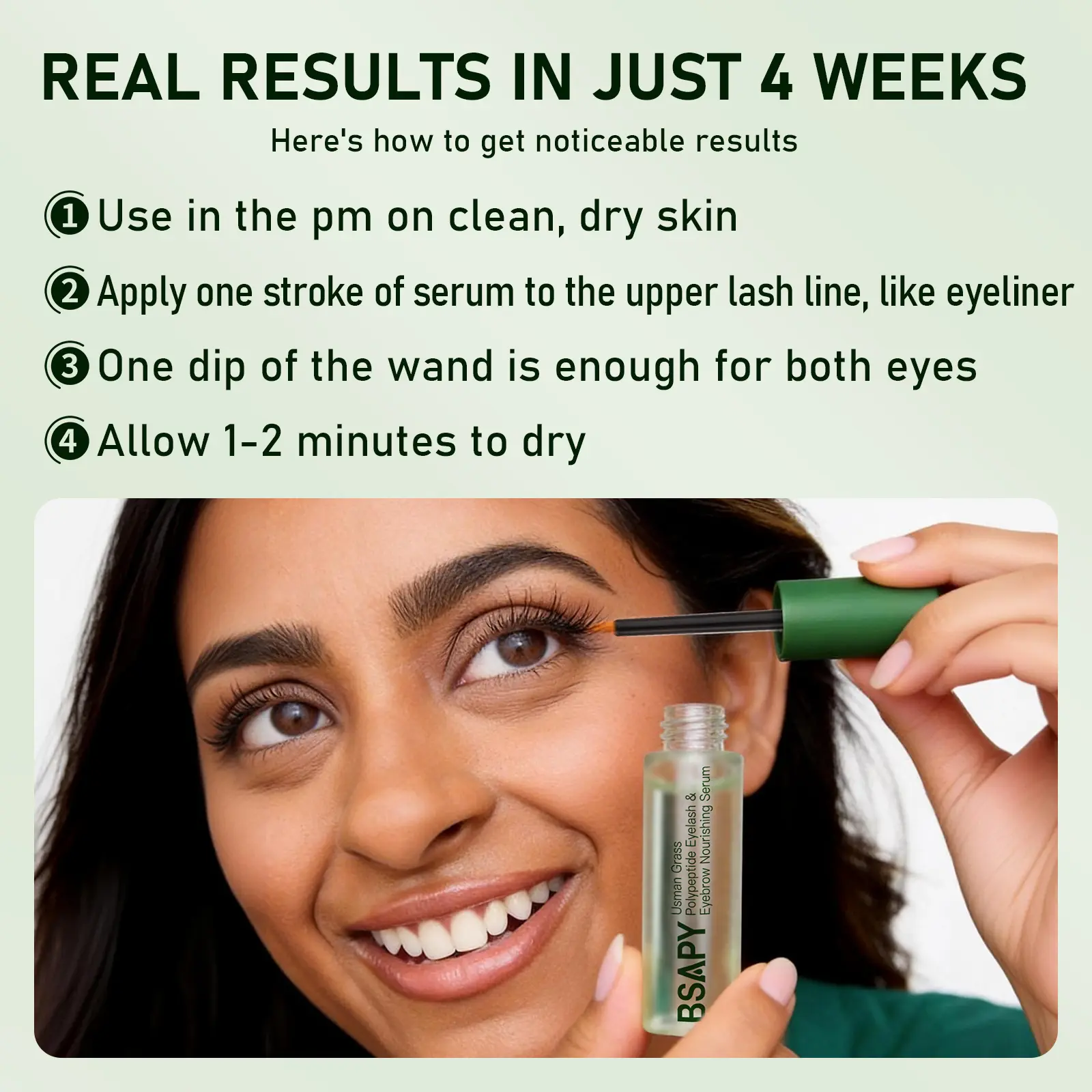 BSAPY Usman Grass & Peptide Lash & Brow Enhancing Serum, Vitamin & Castor Oil Infused Formula for Longer, Thicker, Fuller Natural Eyelashes & Eyebrows, Ophthalmologist Tested, Cruelty-Free Gentle Lash Brow Growth Essence
