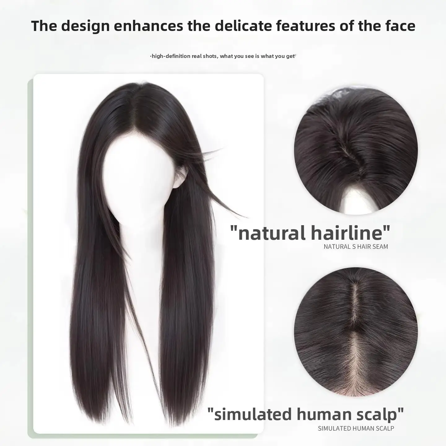 Women's Full Head Synthetic Wig Long Black Straight Middle Part Fluffy Natural Daily Hairstyle Wig for Everyday Use