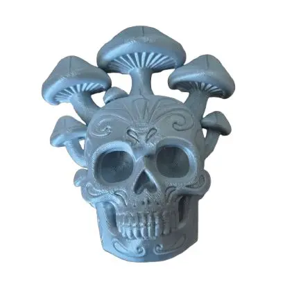This Blue Skull with Mushroom Design is a standout piece for your home decor. Its unique design combines the eerie charm of a skull with the whimsical touch of a mushroom. Perfect for adding a touch of creativity to any room. This art piece is not just decor; it's a statement.