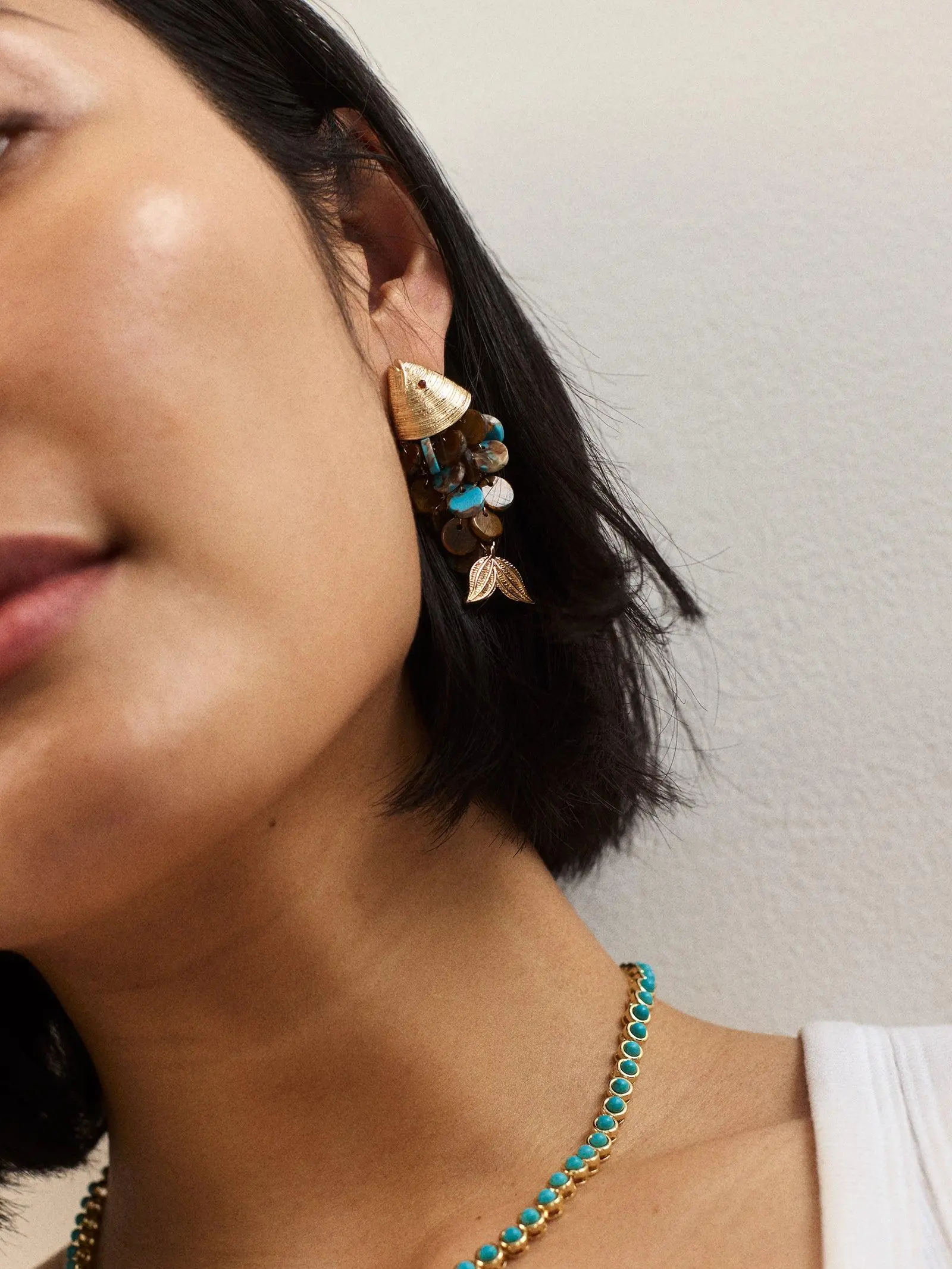 A true statement piece, these earrings are perfect for dressing up a linen look or adding delightful charm to evening wear.