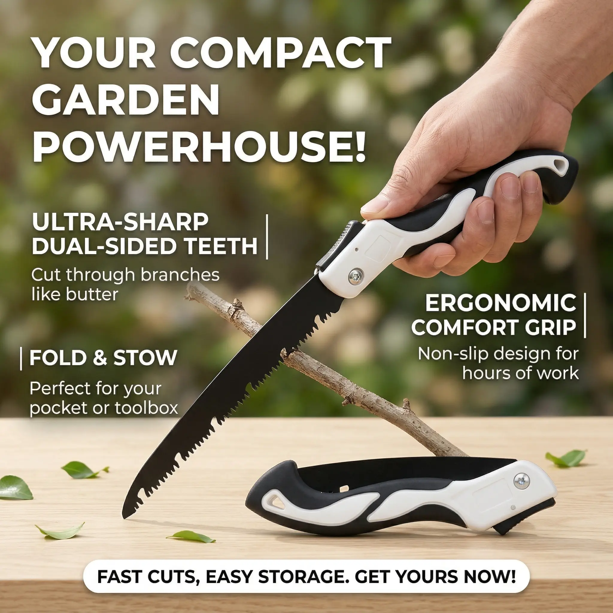 Folding saw, woodworking cutting pruning hand saw equipped with an SK5 curved blade for garden pruning—a folding hand saw suitable for tree trimming, camping, gardening, and woodworking tasks.