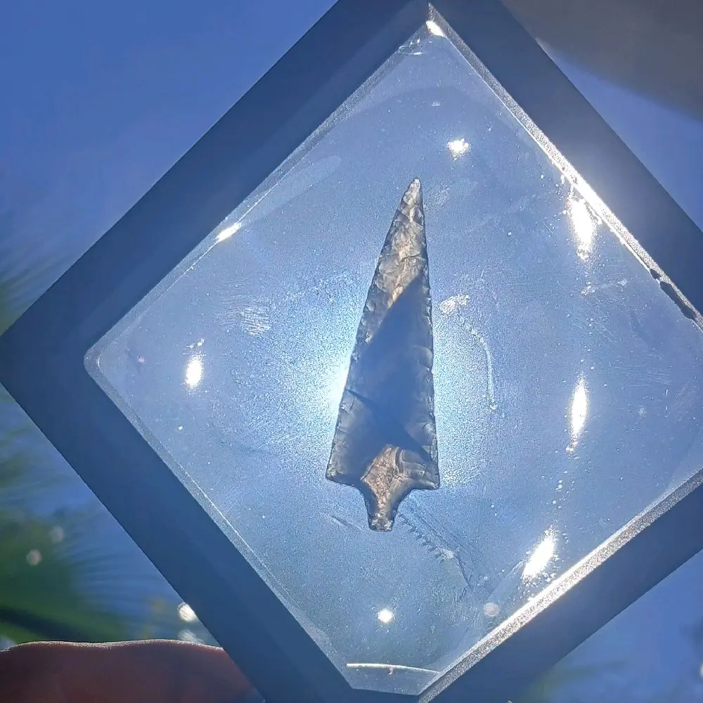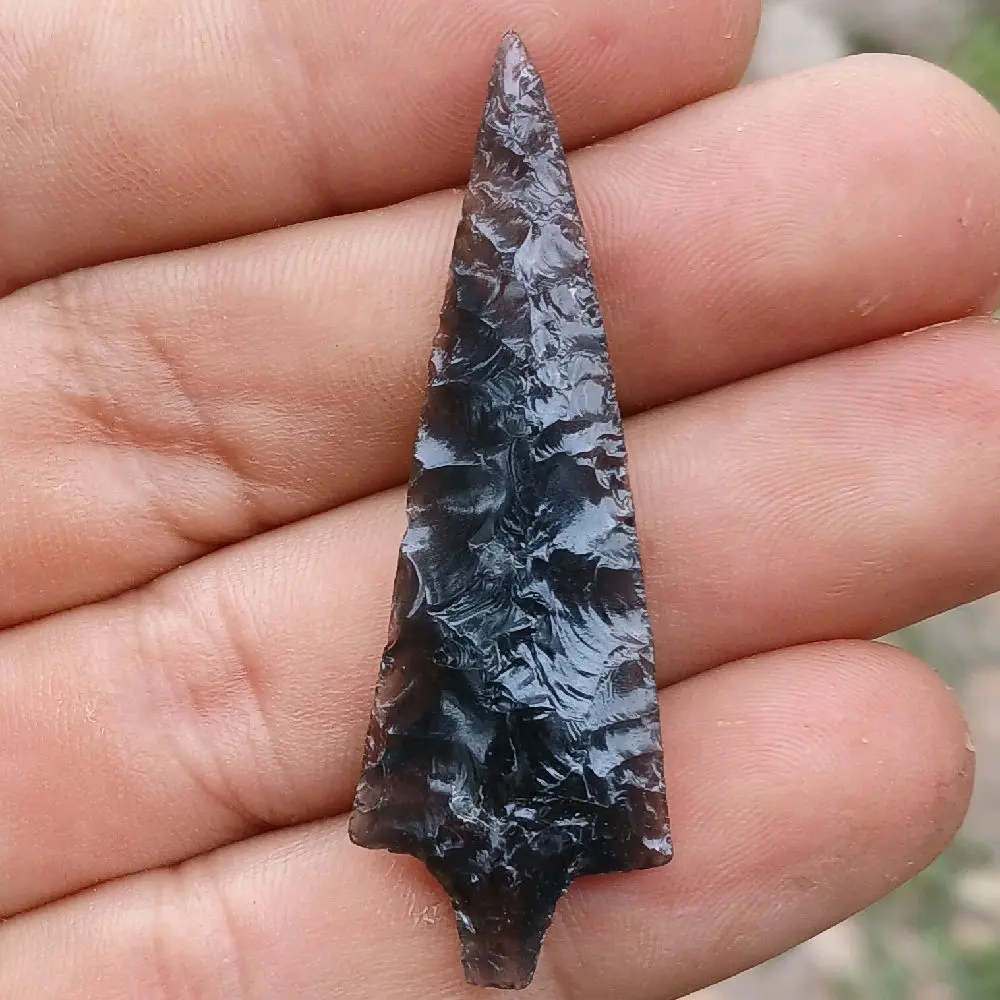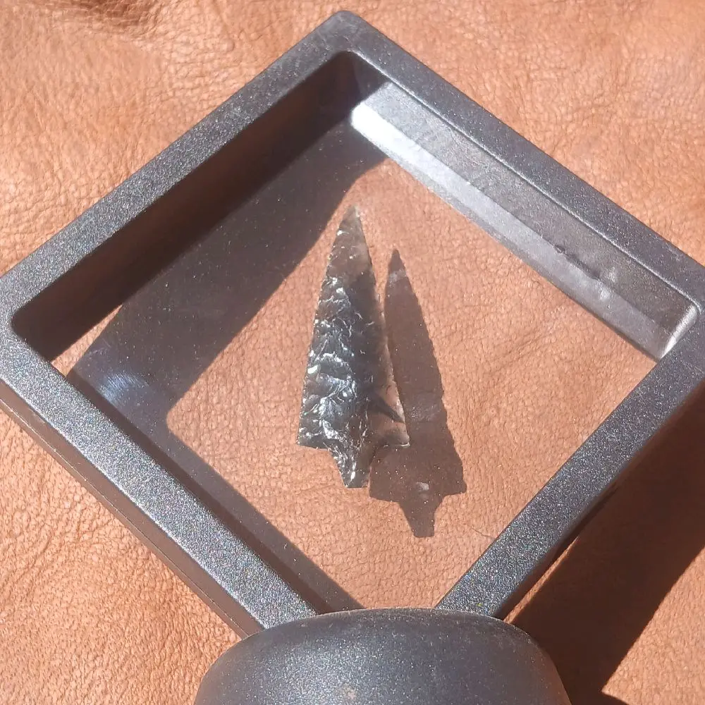 Place the arrowhead on any flat surface for a striking visual. Its obsidian material adds a natural, earthy aesthetic. Perfect for home decor or as a conversation starter.