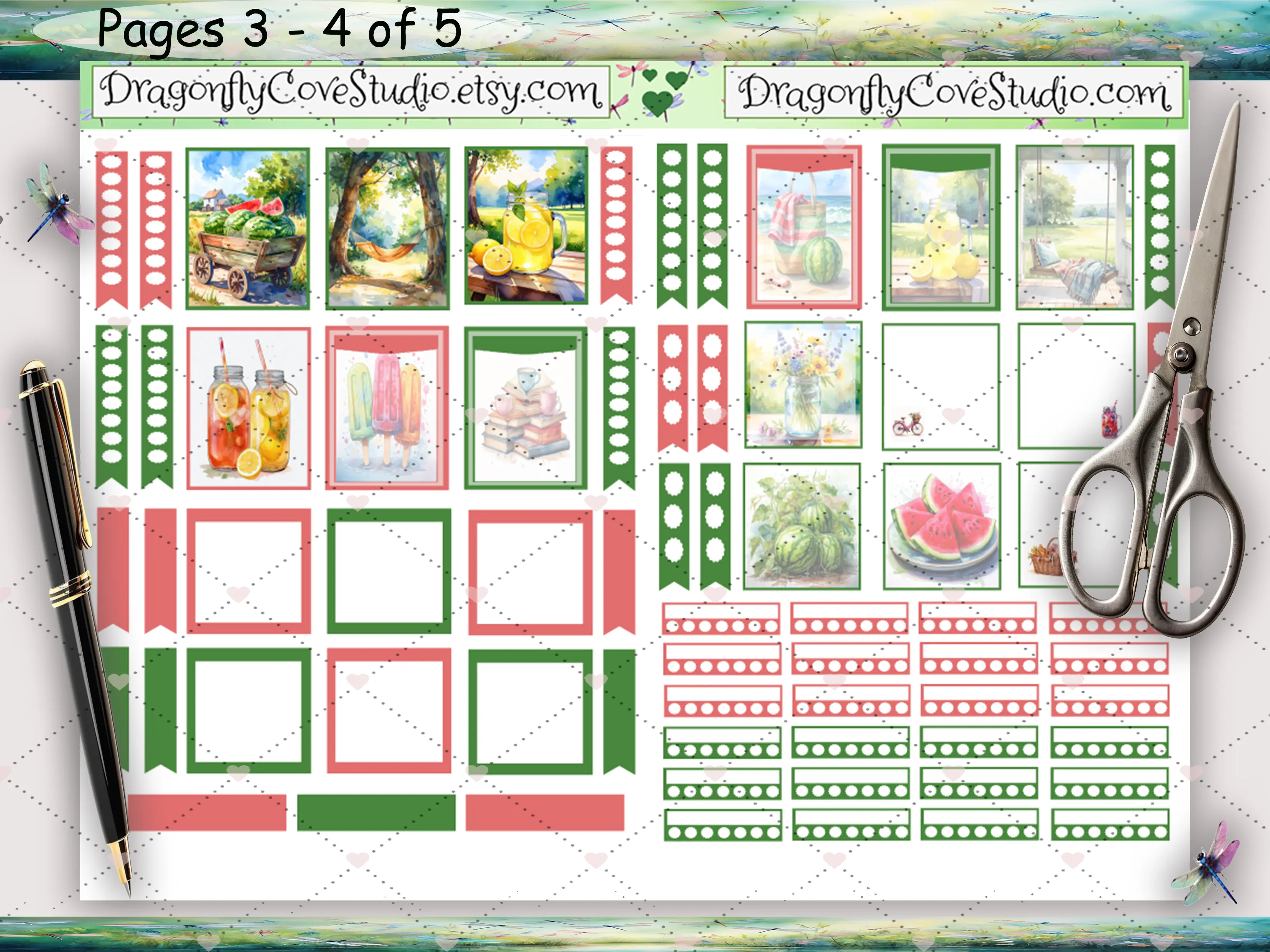 ️ Decorative elements featuring beach scenes, hammocks, sun tea, and picnic moments