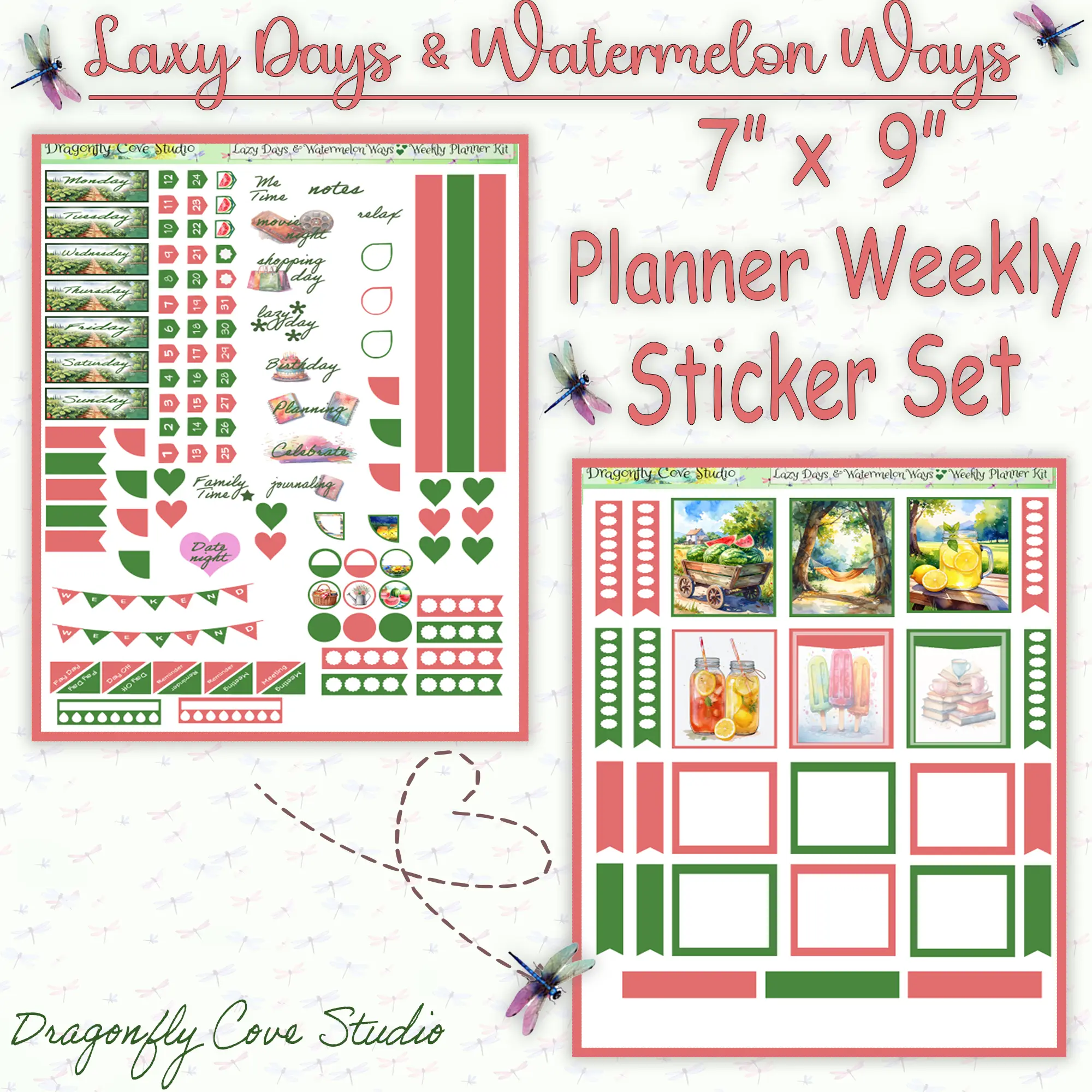 Bring relaxed summer days into your planner with the Lazy Days & Watermelon Ways 7x9 Weekly Planner Sticker Kit ️ Designed to fit neatly within 7x9 weekly spreads, this printed and shipped kit helps you stay organized while capturing the feeling of slow, sunny days and simple summer moments.