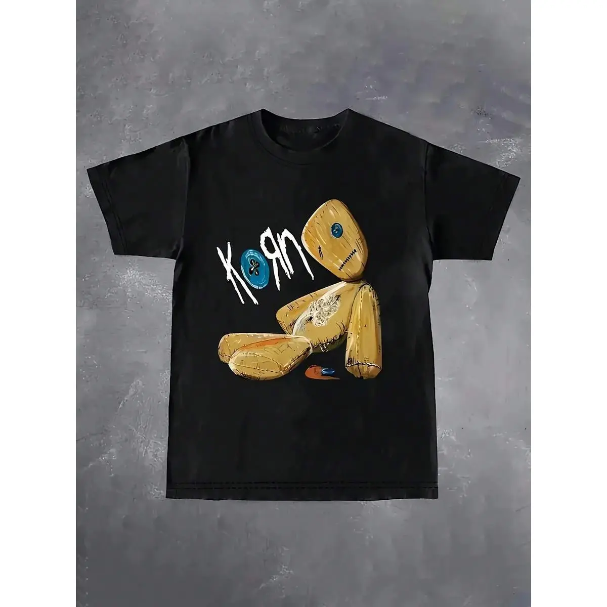 Men Korn Band Graphic T-Shirt Black Short Sleeve Casual Tee With Random Digital Print Round Neck Machine Washable All-Season Comfort For Casual Attire Regular Fit Shirt Streetwear Fashion Rock Style Durable Print Unisex Style Street Style