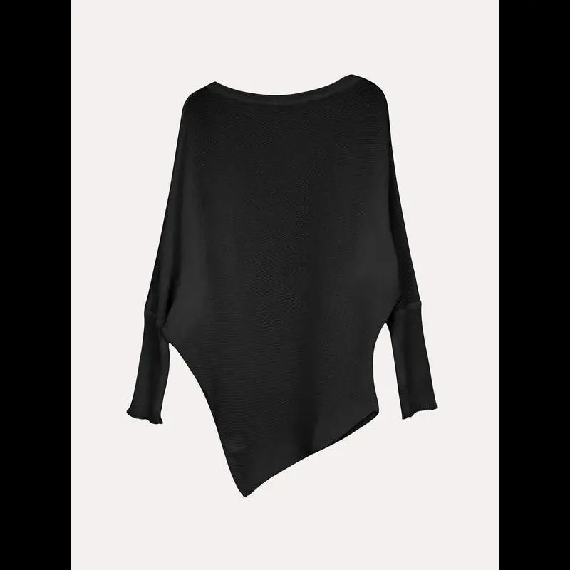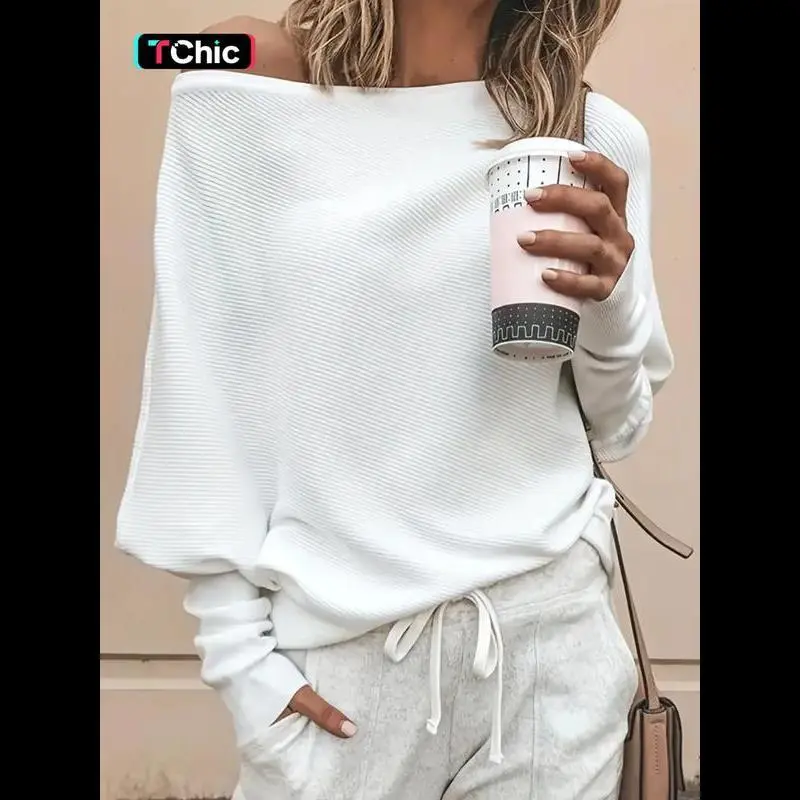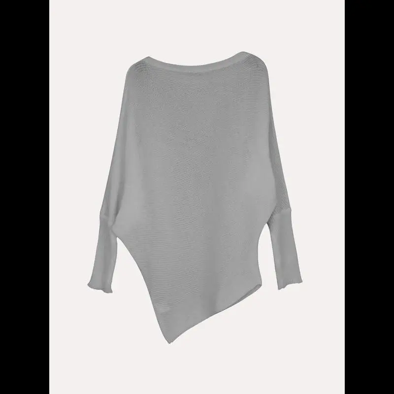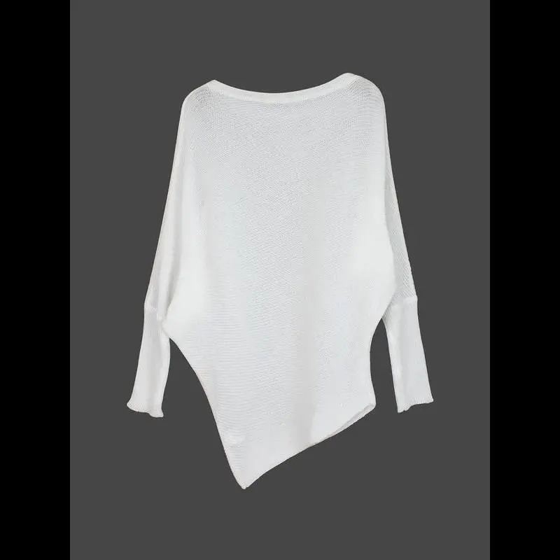 Women's Plain Asymmetrical Hem Boat Neck Batwing Sleeve Sweater, Casual Long Sleeve Jumper for Spring & Fall, Women's Knitwear for Daily Wear