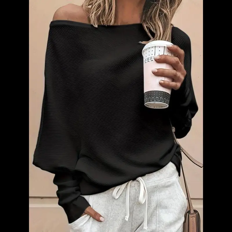 [High-Quality Knitwear]: Made of polyester material, this sweater offers durability and lasting comfort. /[Effortlessly Versatile]: Style this chic batwing sleeve sweater with jeans for a casual look or pair it with a skirt for a touch of elegance, perfect for both spring and fall occasions. /[Flattering Fitted Design]: Enjoy a fitted look that accentuates your silhouette, thanks to the right amount of stretch and tailored fit of this boat neck jumper. /[Versatile Colors]: Available in black, bright orange, gray, navy blue, and white to match any outfit. /[Seasonal Comfort]: Crafted for the transitional weather of spring and fall, this sweater provides cozy warmth without being too heavy for cooler days.