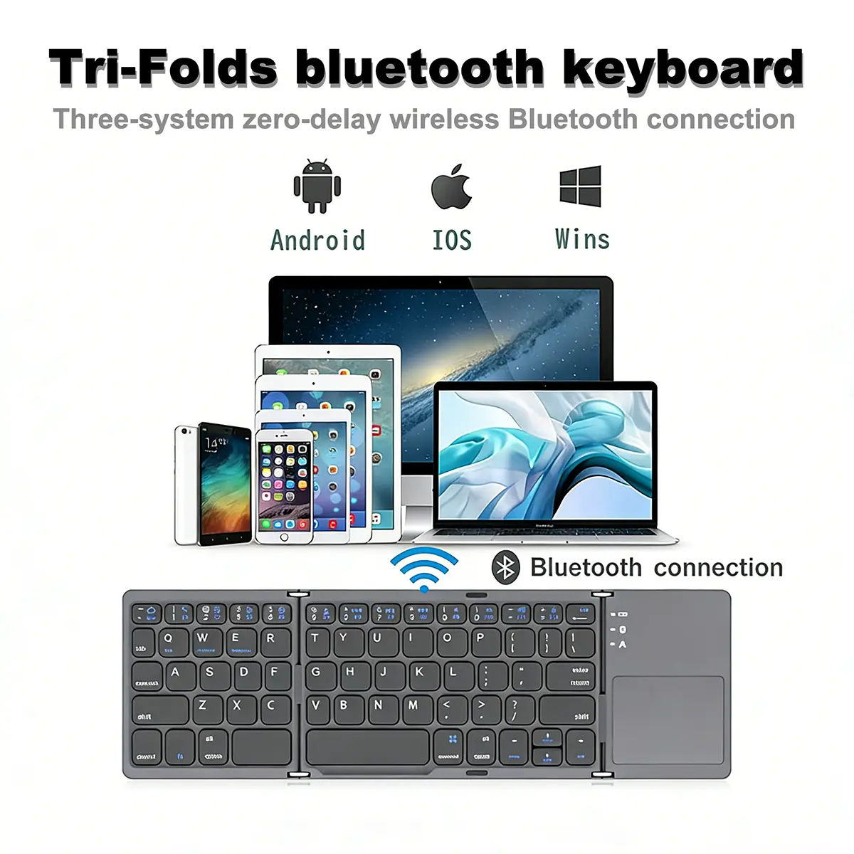 Wireless Bluetooth Keyboard for Android Smartphone Tablet - Dual Device Connection, Rechargeable Battery, Foldable Touchpad, Smart Laptop Typing Tool **[Transform Your Mobile Productivity with Effortless Typing]** Say goodbye to clumsy on-screen typing and hello to a portable keyboard that turns your smartphone or tablet into a mini-laptop in seconds!This foldable Bluetooth keyboard is designed for Android users who need speed, versatility, and convenience-whether you’re working on the go, streaming content, or staying connected with ease.**✅Dual Device Connection & Universal Compatibility** Pair with 2 devices simultaneously (e.g., your phone + tablet) and switch between them with a single tap!No more fumbling with cables or complex setups-just connect via Bluetooth 5.0 for stable, lag-free typing.Works seamlessly with Android smartphones, tablets, and even laptops (via USB-C or Bluetooth) for a multi-device workflow that adapts to your needs.**✅Foldable Design: Portable Freedom, Compact Storage** Folds down to the size of a notebook for easy carry in bags, backpacks, or even pockets!The slim, lightweight build ensures you can take productivity anywhere-cafés, travel, or remote work.Unfold it to reveal a full QWERTY keyboard with responsive keys, and use the built-in touchpad for smooth cursor control-no mouse needed!**✅Long-Lasting Battery & Fast Charging** Powered by a 140mAh rechargeable lithium battery that keeps you going for **100 hours of continuous use** on a single charge.Charge it in under 2 hours, and enjoy up to **3 years of reliable performance** with minimal maintenance.A low-battery indicator reminds you to recharge before you’re caught off-guard-perfect for busy days without wall outlets.**✅Smart Touchpad: One Tool, Two Functions** Skip the hassle of carrying an extra mouse!The integrated touchpad supports smooth cursor movement, pinch-to-zoom, and precise navigation-ideal for scrolling through documents, web pages, or apps.The keyboard layout is optimized for Android’s shortcuts, including dedicated keys for search, back, and home, boosting efficiency by 50% in daily tasks.**✅ Typing Made Comfortable** Each key is spaced perfectly for natural, fast typing-no more typos from cramped keys. The foldable hinge ensures stability when in use, and the sleek, minimalist design adds a professional touch to your mobile setup. Whether you’re drafting emails, coding, or binge-watching, this keyboard elevates every interaction. **[Upgrade Your Mobile Experience Today]** Perfect for students, freelancers, or anyone who hates typing on tiny screens-this keyboard is your shortcut to smarter, faster, and more enjoyable mobile productivity. Don’t settle for ordinary-choose a tool that works as hard as you do. **Specifications** - Connection: Bluetooth 5. 0 (fast & stable) - Device Compatibility: Android Smartphones, Tablets, Laptops (Bluetooth/USB-C) - Battery: 140mAh Rechargeable Li-Ion - Charging Time: