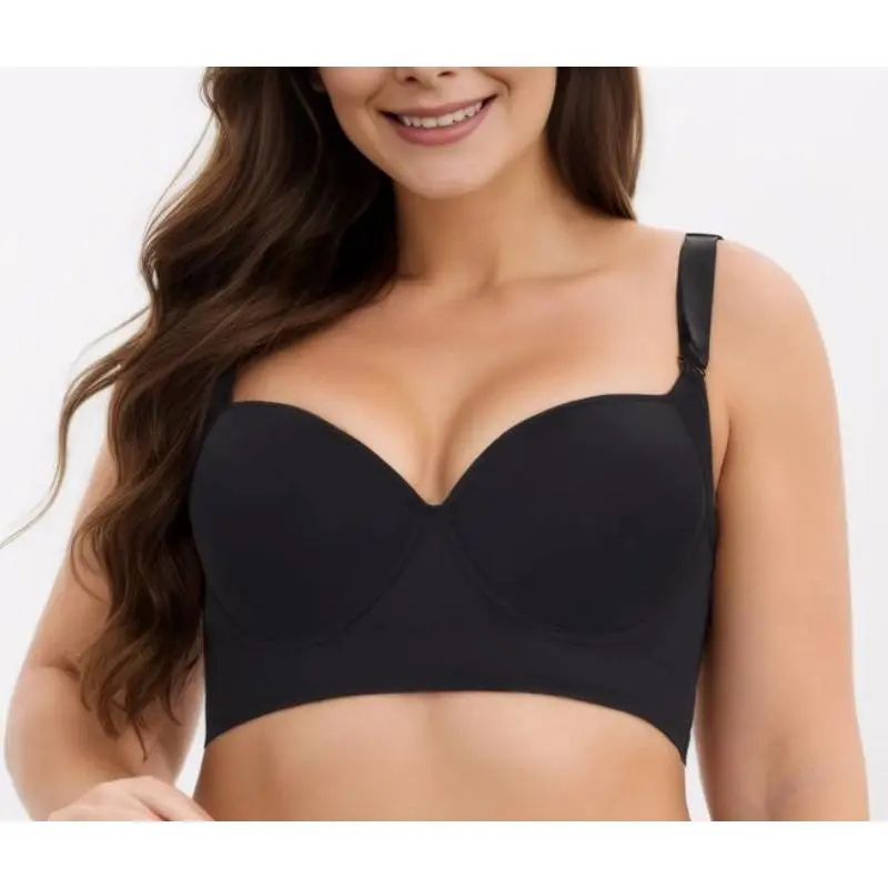 Introducing our Women's Back Smoothing Bra, designed for the modern woman who values comfort, style, and support. This minimalist bra is perfect for everyday wear, with its seamless design that hides back fat and provides full coverage for a smooth silhouette. Plus Size women will love the inclusive sizing options, ensuring a perfect fit for all body types. Not only does this bra offer a sleek look, but it also features push-up padding for added lift and support. The breathable fabric keeps you cool and comfortable all day long, while the adjustable straps allow you to customize the fit to your liking. Say goodbye to sagging and hello to a lifted, youthful shape with our Slimming And Anti-sagging technology. Whether you're a lady or a girl, this bra is sure to make you feel confident and sexy. The plain design is versatile and can be worn under any outfit, while the push-up feature enhances your natural curves. Treat yourself to the ultimate blend of comfort and style with our Back Smoothing Bra. Choose quality, choose confidence, choose our Seamless Bra today./3