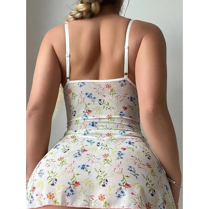 Plus Size - Plus Size - 2026 New Women'S Camisole Backless Loose Long Home Wear Dress | Beach Skirt Swimsuit, Sleeveless, V-neck, Medium Stretch Fabric, Straight Hem, Random Print, Elegant Style for Spring/Summer