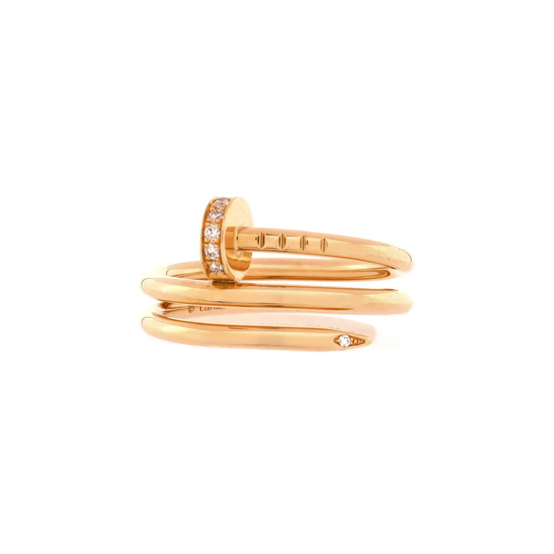 Pre-owned Cartier Juste un Clou Double Ring 18K Yellow Gold and Diamonds Small by Rebag