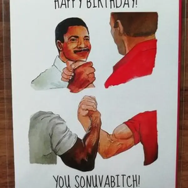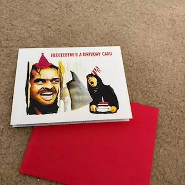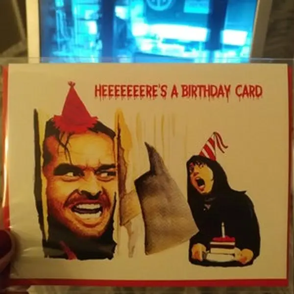 “HEEEEEERE'S A BIRTHDAY CARD!”