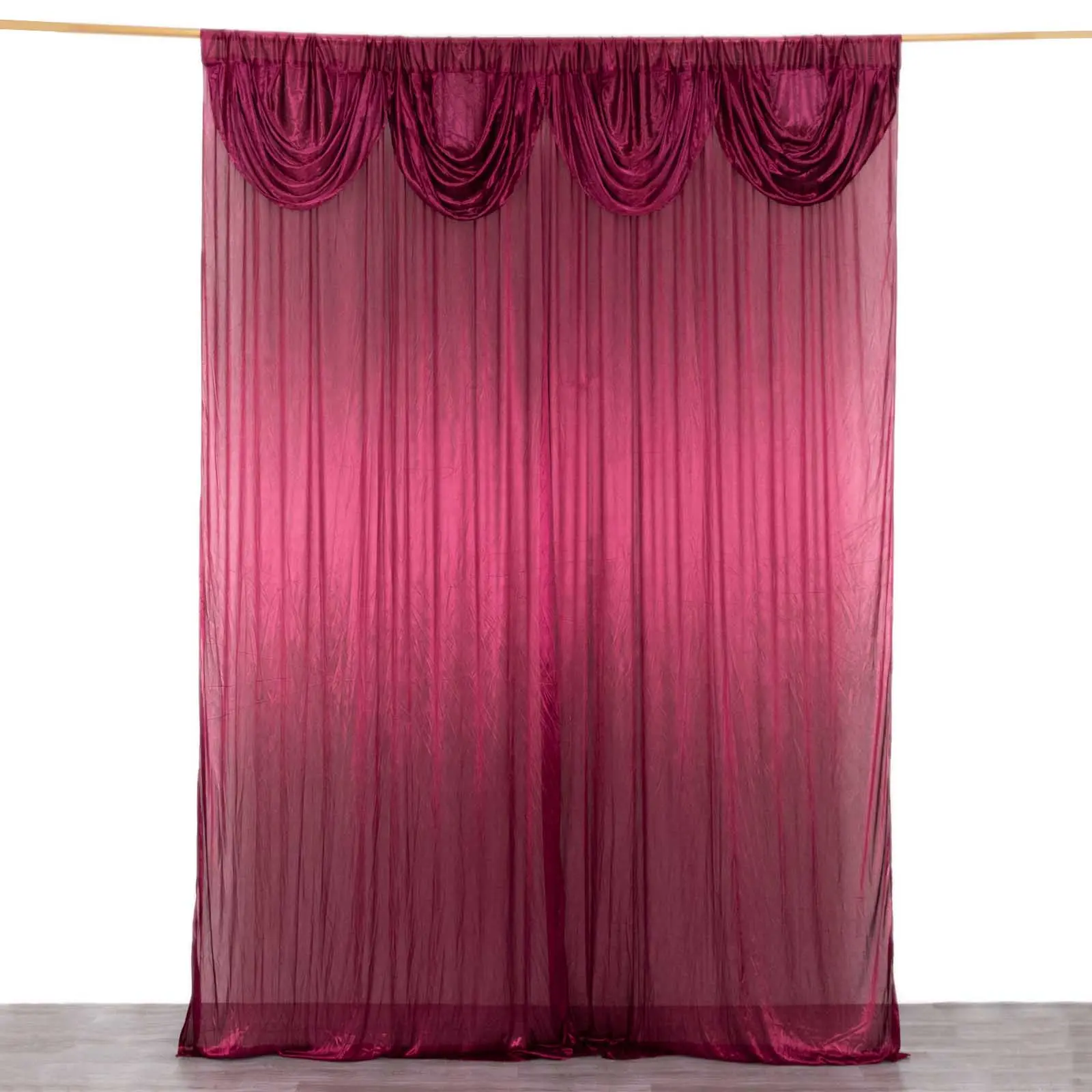 Burgundy Double Drape Pleated Satin Divider Backdrop Curtain Panel, Glossy Photo Booth Event Drapes - 10ftx10ft