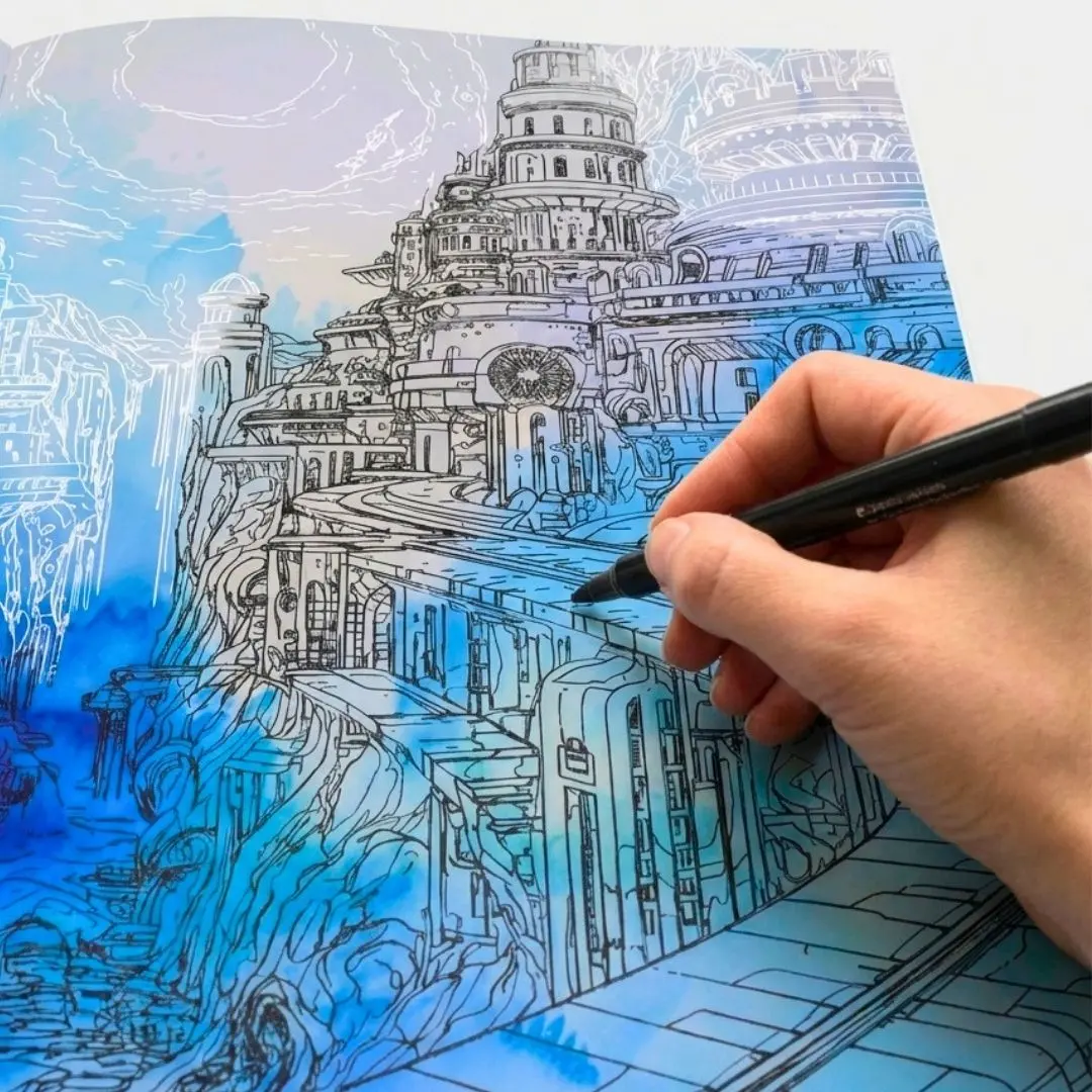 This is not a coloring book — it is an ink tracing experience. Every page is pre-colored with vibrant watercolor backgrounds and delicate white lines waiting for you to trace. Follow the lines, reveal the city, and watch your art come to life one stroke at a time. No drawing skills needed. No colors required. Just one pen and your focus. Perfect for adults who want a creative ritual that calms the mind and produces stunning results. This is the original Hidden Cities design by Inkalia, the creators of the ink tracing technique. 35 unique architectural illustrations. Single-sided pages to prevent bleed-through. Large format for comfortable tracing. A thoughtful gift for art lovers, travelers, and anyone who needs a mindful creative escape.