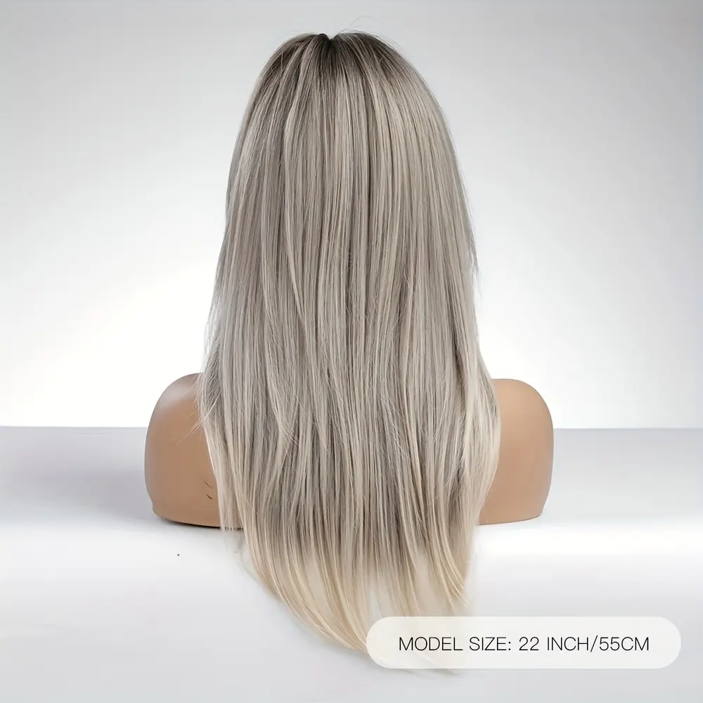 14-inch Elegant Goddess Gray-Golden High-Level Gradient Collarbone-Length Short Straight Women's Wig, High-Temperature Fiber with Rose Net Cap, Suitable for Work, School, Makeup or No Makeup, Travel Photography, Halloween, Trimmable and Easy