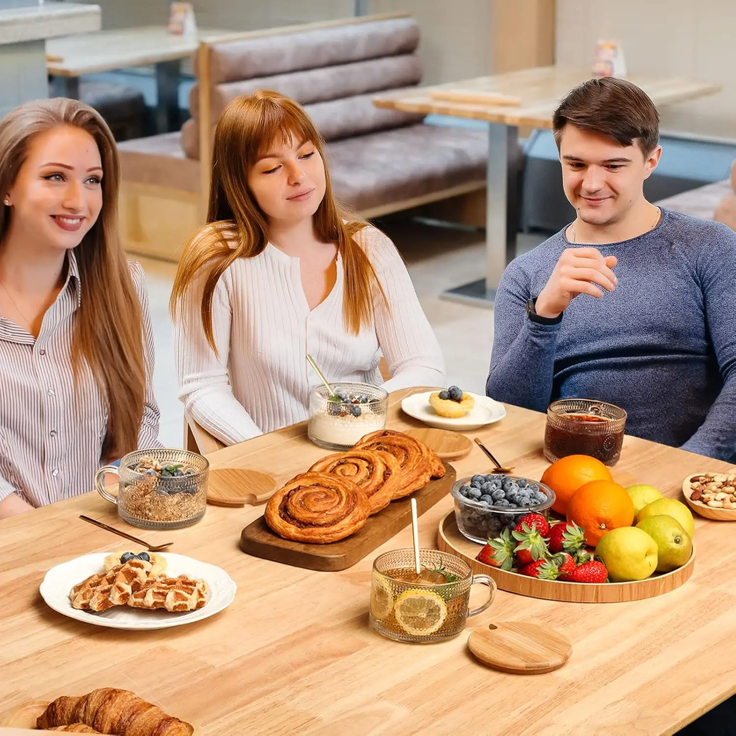 • 4pcs Set Vintage Coffee Mugs – Includes 2 sunflower patterned, 2 raindrop patterned mugs, 4 rose-gold spoons, and 4 bamboo lids. Elegant designs with practicality. Perfect for coffee bars and iced coffee glasses.