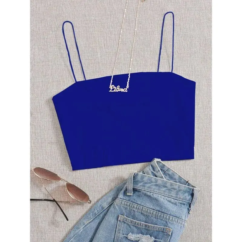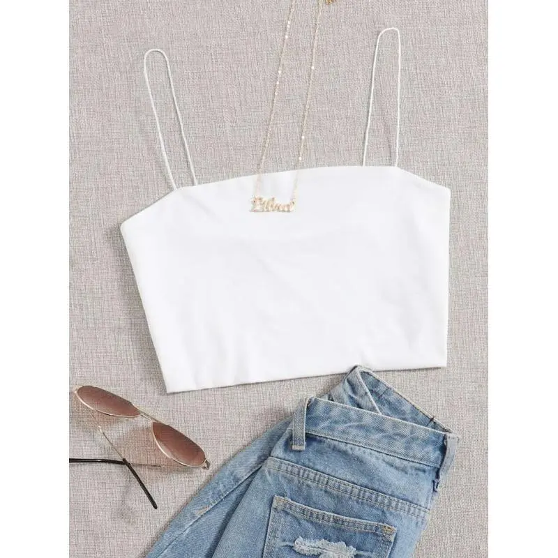 Solid Slim Cami Crop Top Type: Cami Fabric Fit Womenswear Strap