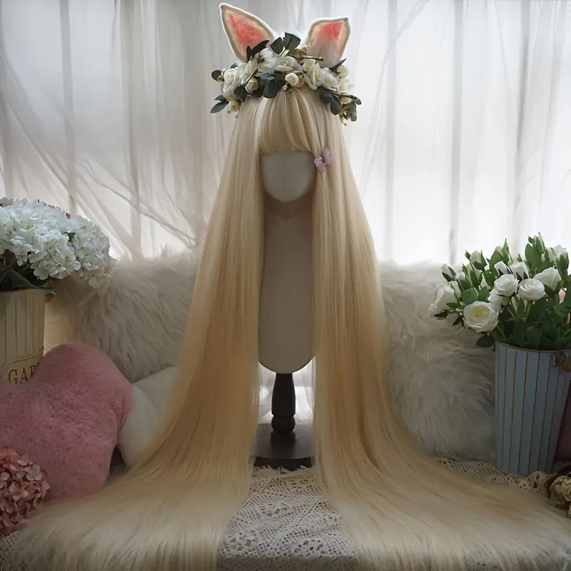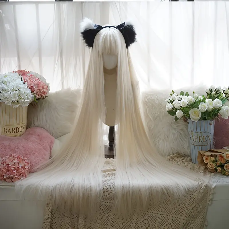 44-inch 46.3inch Extra-Long Straight Hair Wig for Cosplay Party Costumes, Rose Net Golden, Red, Natural Black, Ash Gray, for Adults