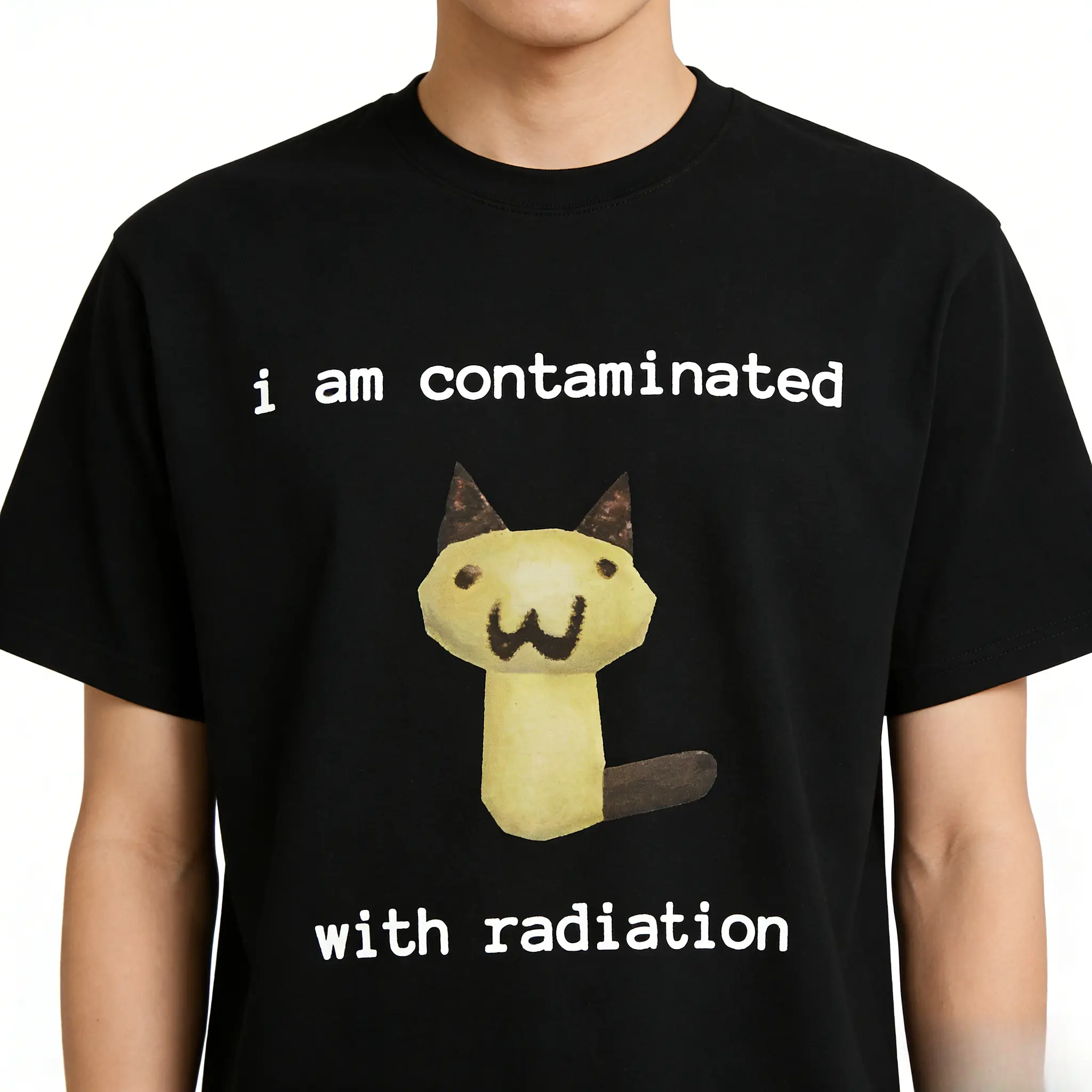 I Am Contaminated with Radiation Funny Cat Meme T-shirt Short Sleeve Men Women Vintage T Shirt MaleCotton T Shirts