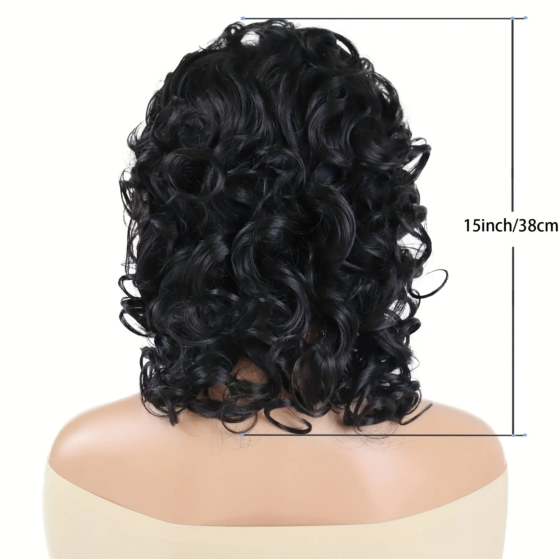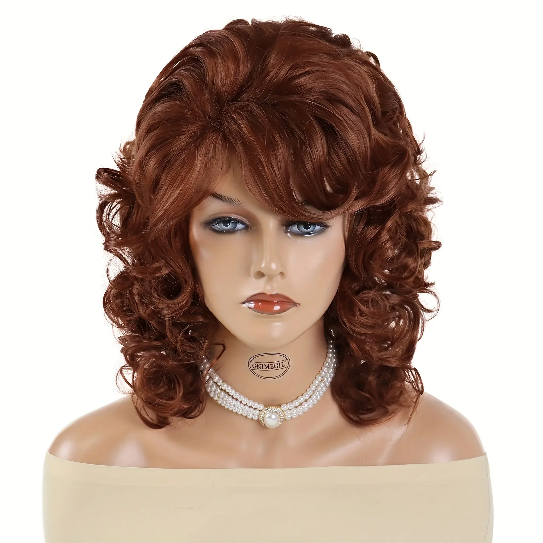 GNIMEGIL Elegant Curly Wave Wig for Women - High Temperature Fiber, Rose Net Cap, 100% Density, Vintage Mid-Length Style, Suitable for All People