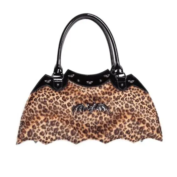 Unleash the wildcat within with our Leopard Bat Handbag. This unique bat-shaped handbag is perfect for any rockabilly or goth fashionista, adding a touch of edgy style to any outfit.