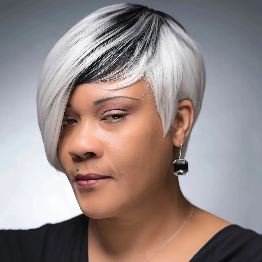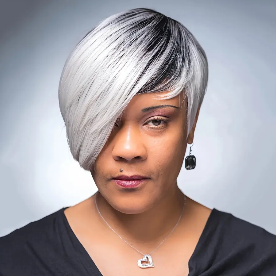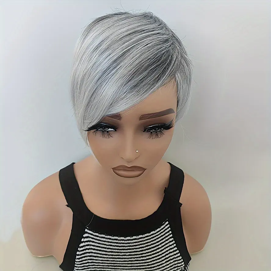 Short Shag Layered Wig in Silvery Gray And Black with Bangs, Perfect for a Storm-Themed Costume Or Cosplay