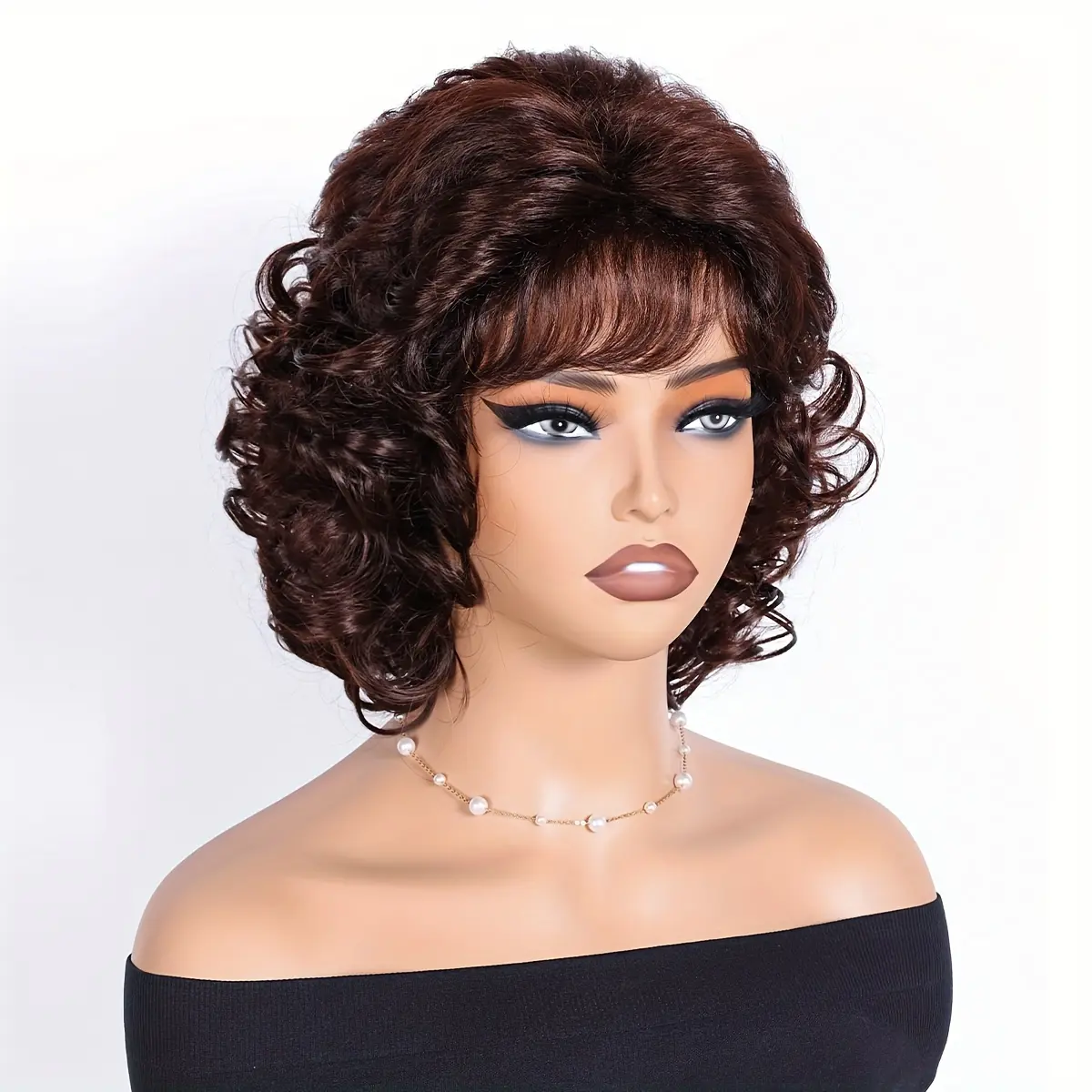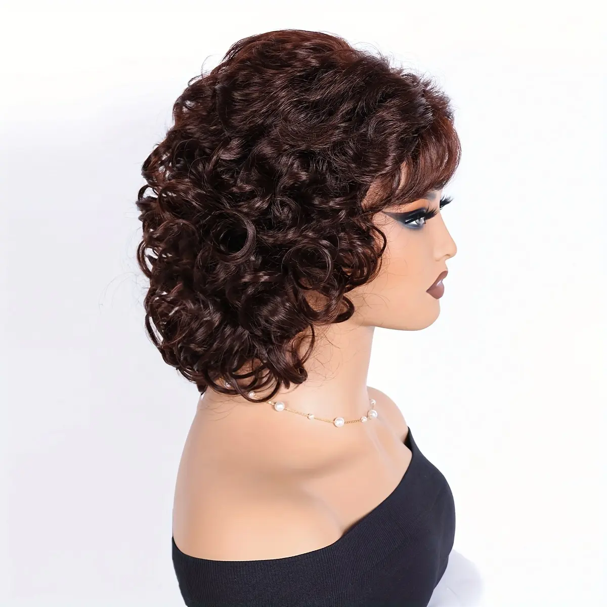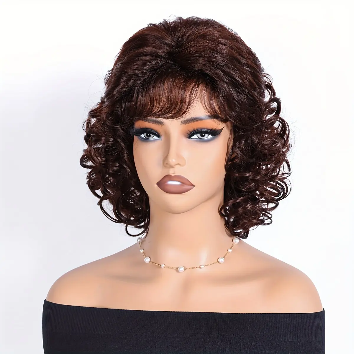 10-Inch Short Curly Wig with Side Bangs And Wavy Hair