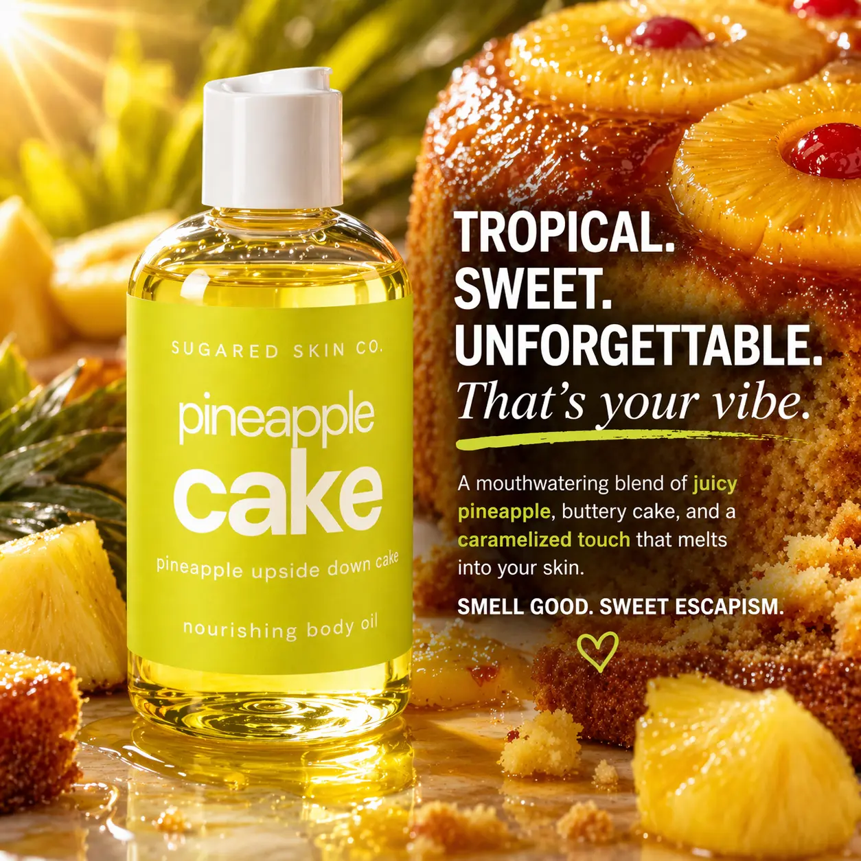 Juicy pineapple. Sweet cake. A creamy finish that melts right in. This ultra-lightweight body oil gives you that sun-kissed, glowing skin you've been chasing — while smelling like the most irresistible dessert on the table. It's giving tropical. It's giving sweet. It's giving obsessed.