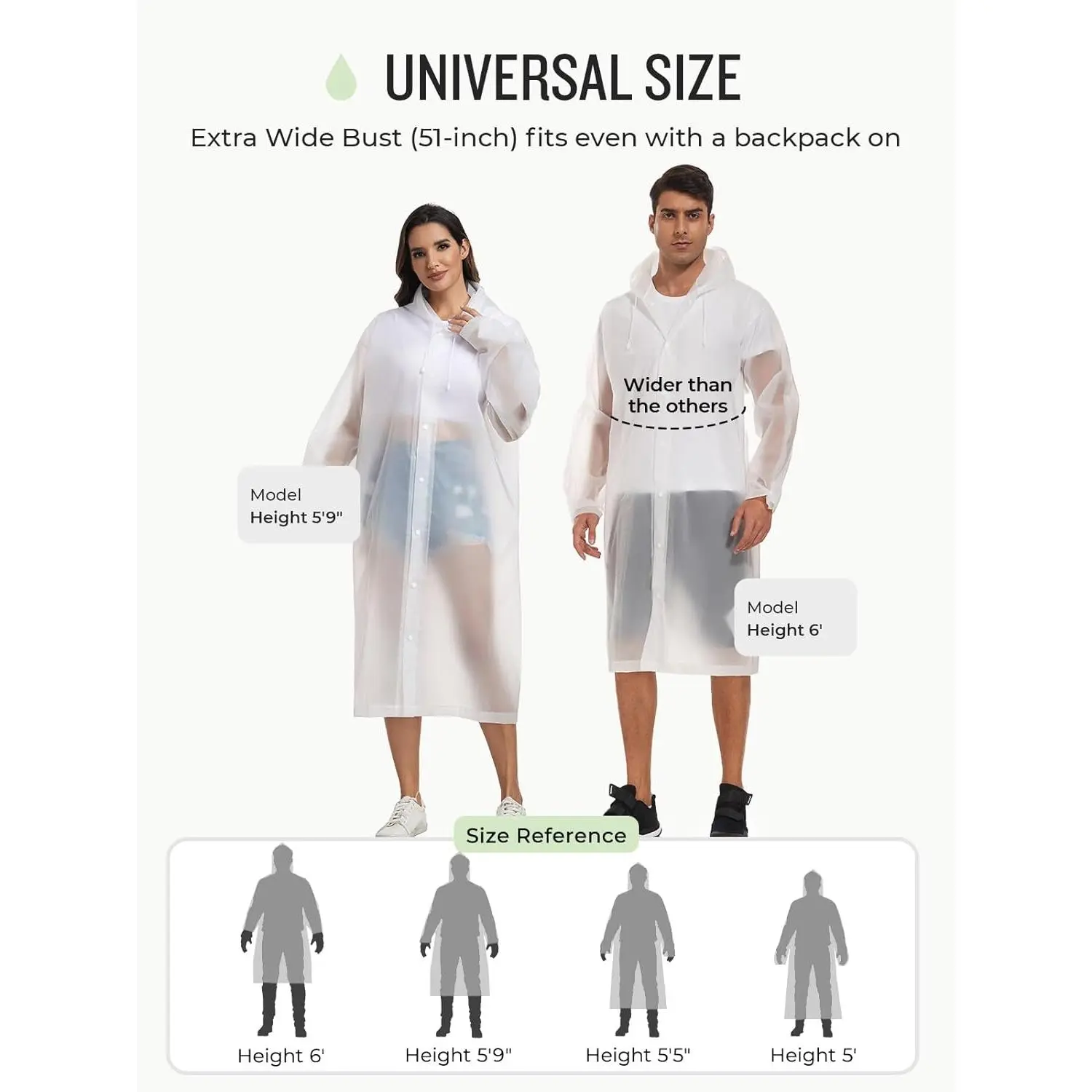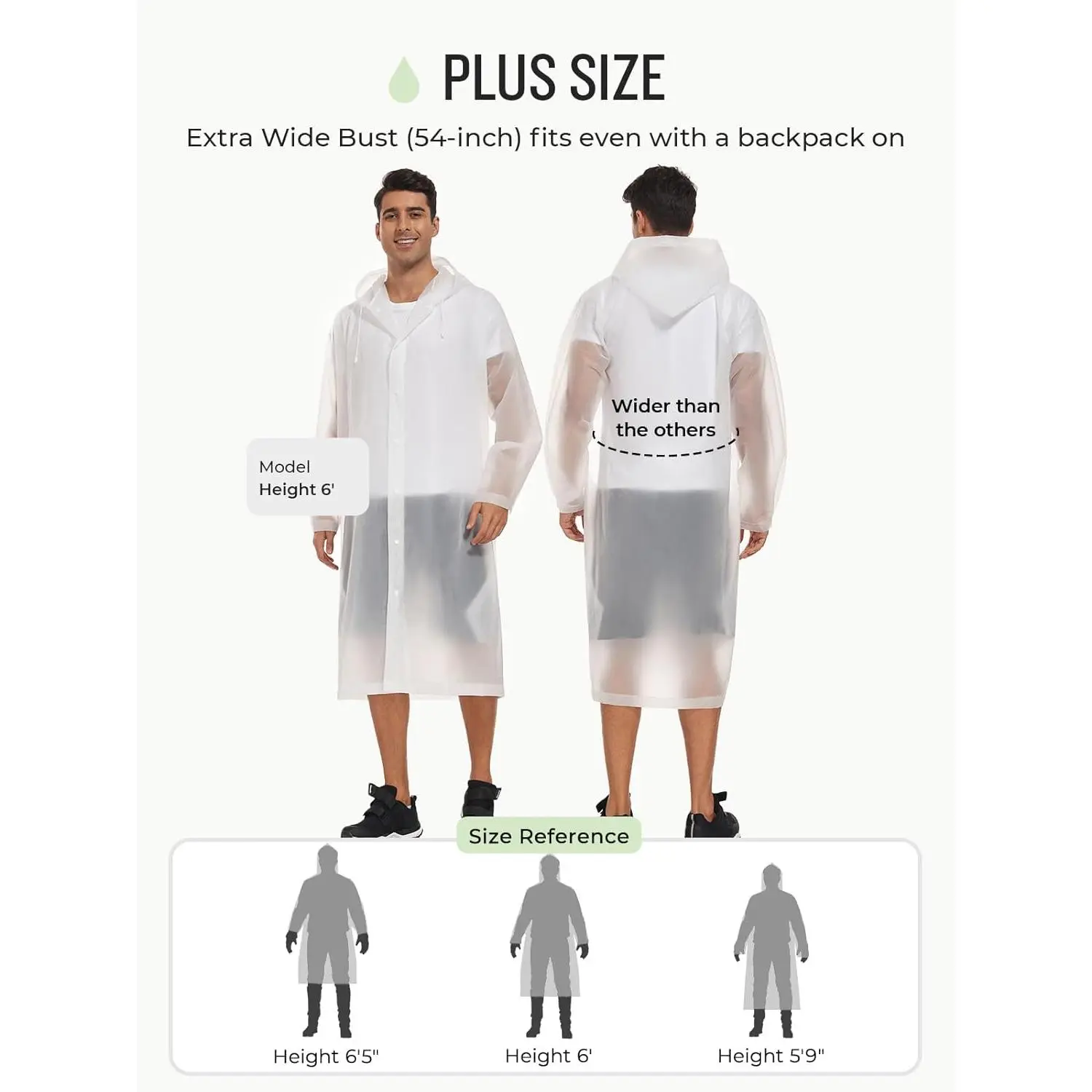 Extra Long Rain Ponchos for Adults - Waterproof EVA Raincoat with Drawstring Hood, Unisex Rain Jacket for Hiking, Camping, Outdoor Activities, Lightweight Packable Reusable Rainwear